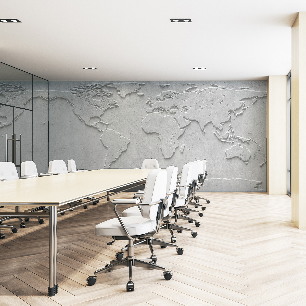 An ideal centerpiece for a home office or contemporary living area, this monochromatic map offers a clean, distraction-free aesthetic. The subtle play of light and shadow across the continents creates a stunning sense of relief against the textured stone backdrop. It is global inspiration stripped down to its most essential, sophisticated form.