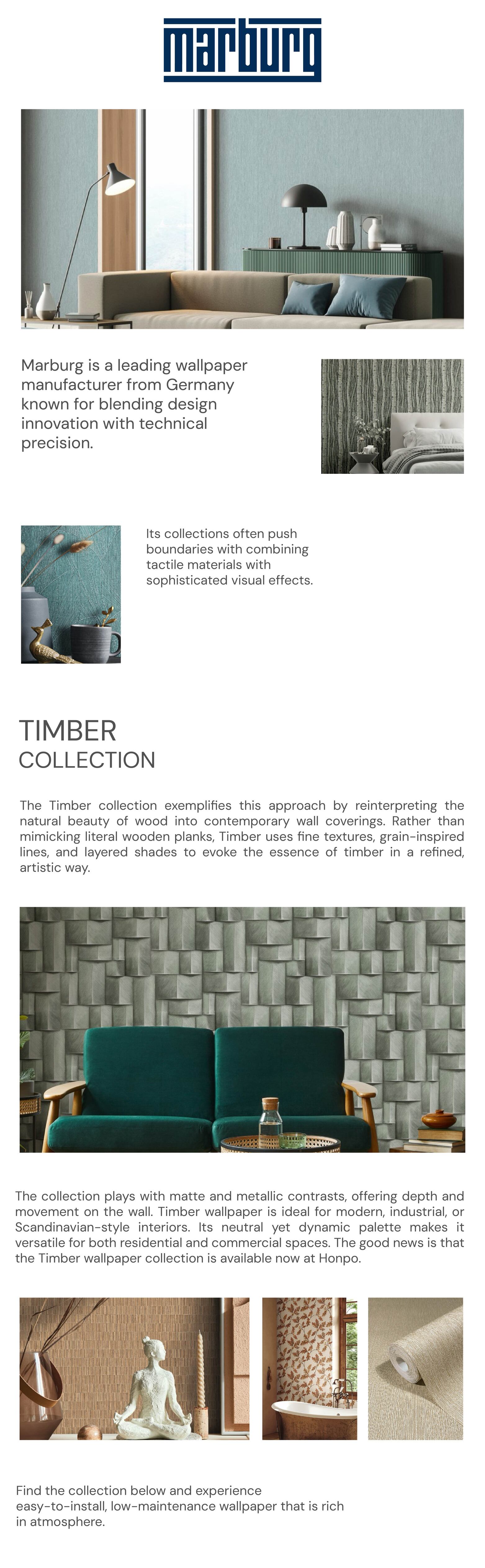 Transform your interiors with Marburg | Timber VIII wallpaper, available at Honpo Singapore. Featuring dimensional textures and earthy tones, it elevates spaces with modern sophistication.