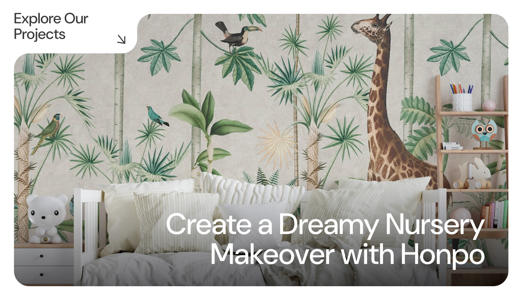 Honpo’s installation team helps parents create the perfect dream room for their children. Our team ensures a seamless and safe installation for kids’ rooms whether it’s a magical fairytale, an adventurous jungle, or a playful space design. We also prioritize our tools that are safe for kids’ spaces, like high-quality and non-toxic materials. Let us transform your child’s room into a creative and inspiring environment, explore our past projects for more ideas!
