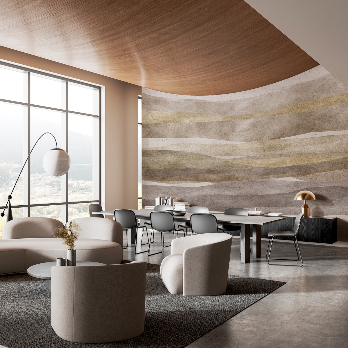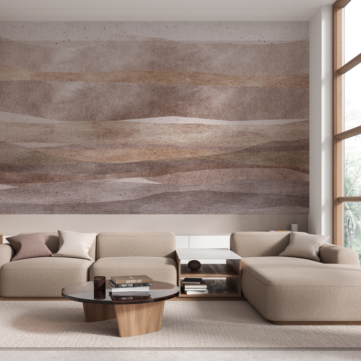 Elevate your walls with a design that blends minimalist aesthetics with organic forms. This "Sediment" mural utilizes a soft watercolor effect and subtle canvas textures to add depth and dimension without overwhelming the room. Its cool palette makes it an ideal backdrop for light wood furniture and biophilic accents, bringing a touch of quiet luxury to your interior.