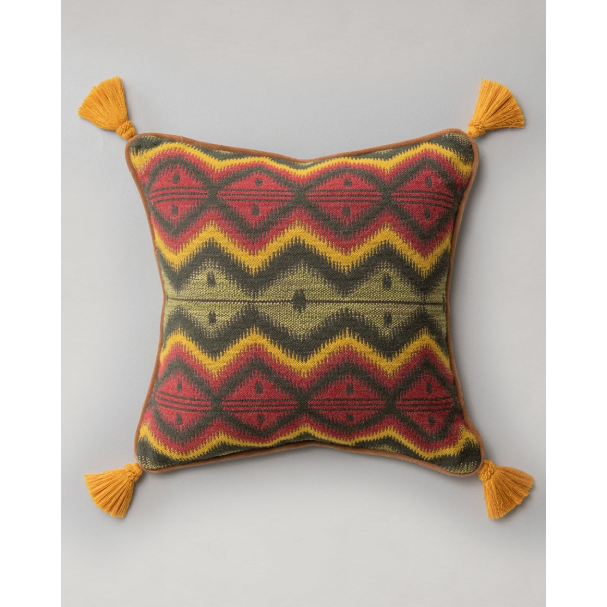35% Cotton, 28% Polyacrylic, 23% Wool, 14% Other Fibers, Finishing : Leather piped edge and tasseled corners, Filling : Duck feather
