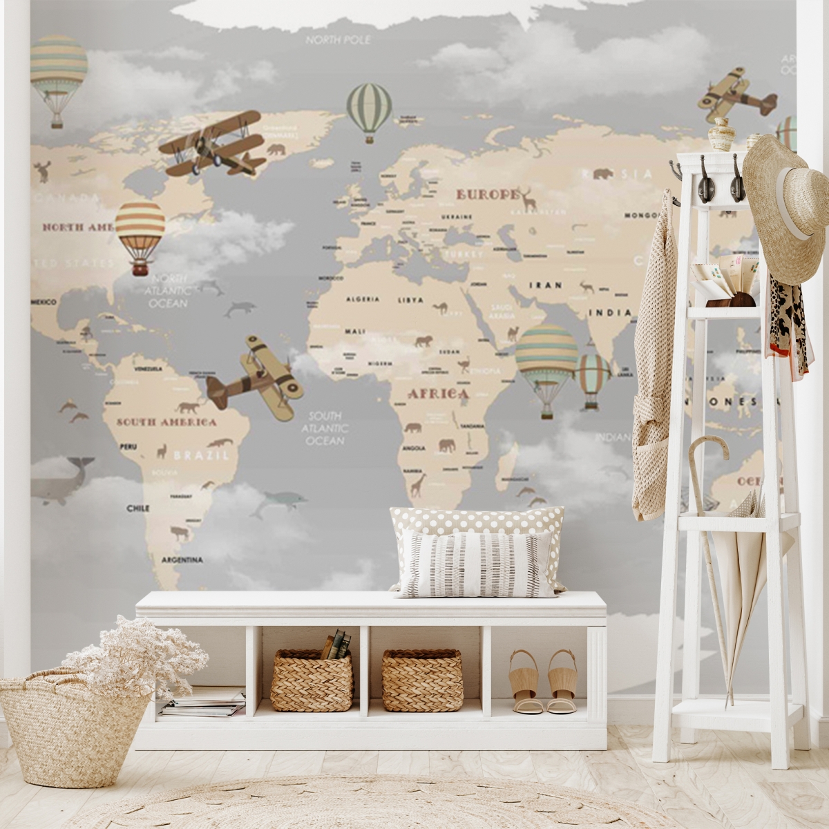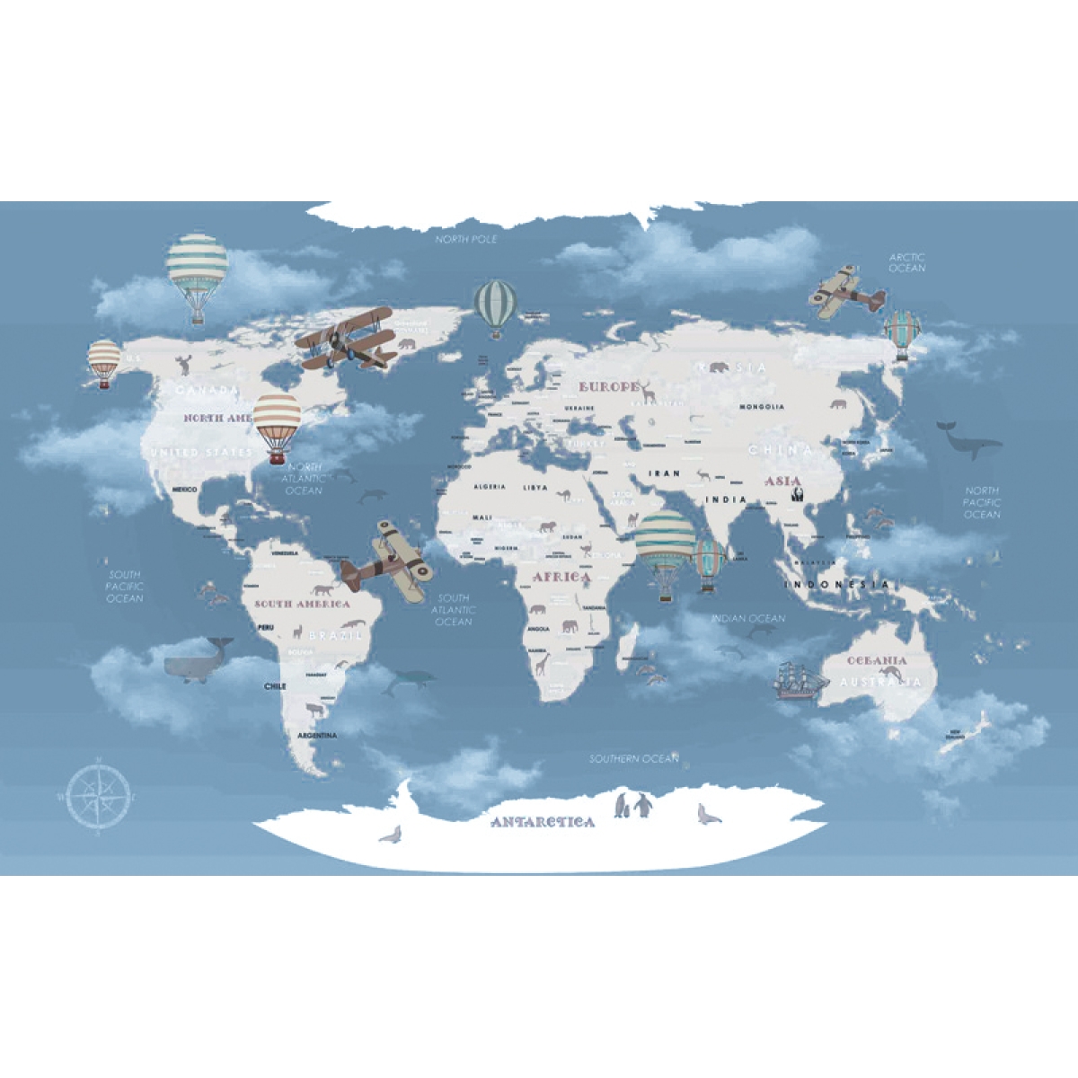 From the whales of the Pacific to the pandas of Asia, our Aero Explorer map is a visual treasure hunt for little wanderers. Designed in a calming palette of slate blue and cream, it brings a world of geography and wonder right to their bedroom walls. Where will we travel today?