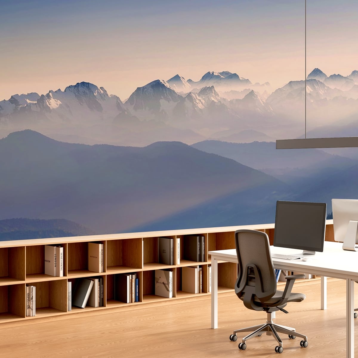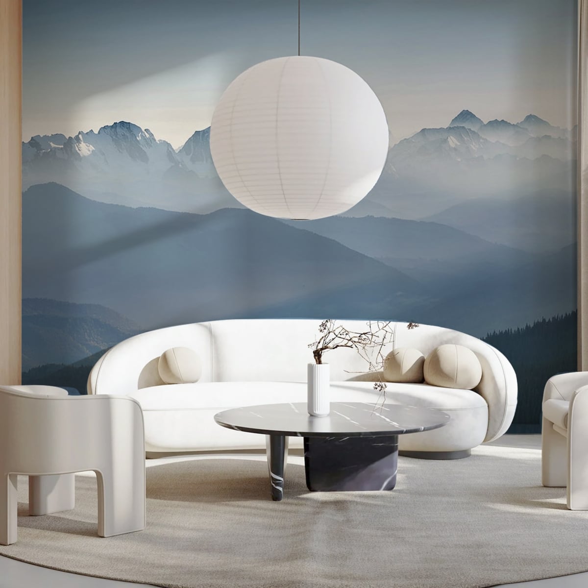 Clean lines meet the untamed wild. This landscape mural uses a sophisticated monochromatic palette to ground your interior design. The interplay of light and shadow across the ridges provides a subtle, natural texture that complements modern furniture without overwhelming the room. It's the ultimate backdrop for a minimalist bedroom or a quiet home office.