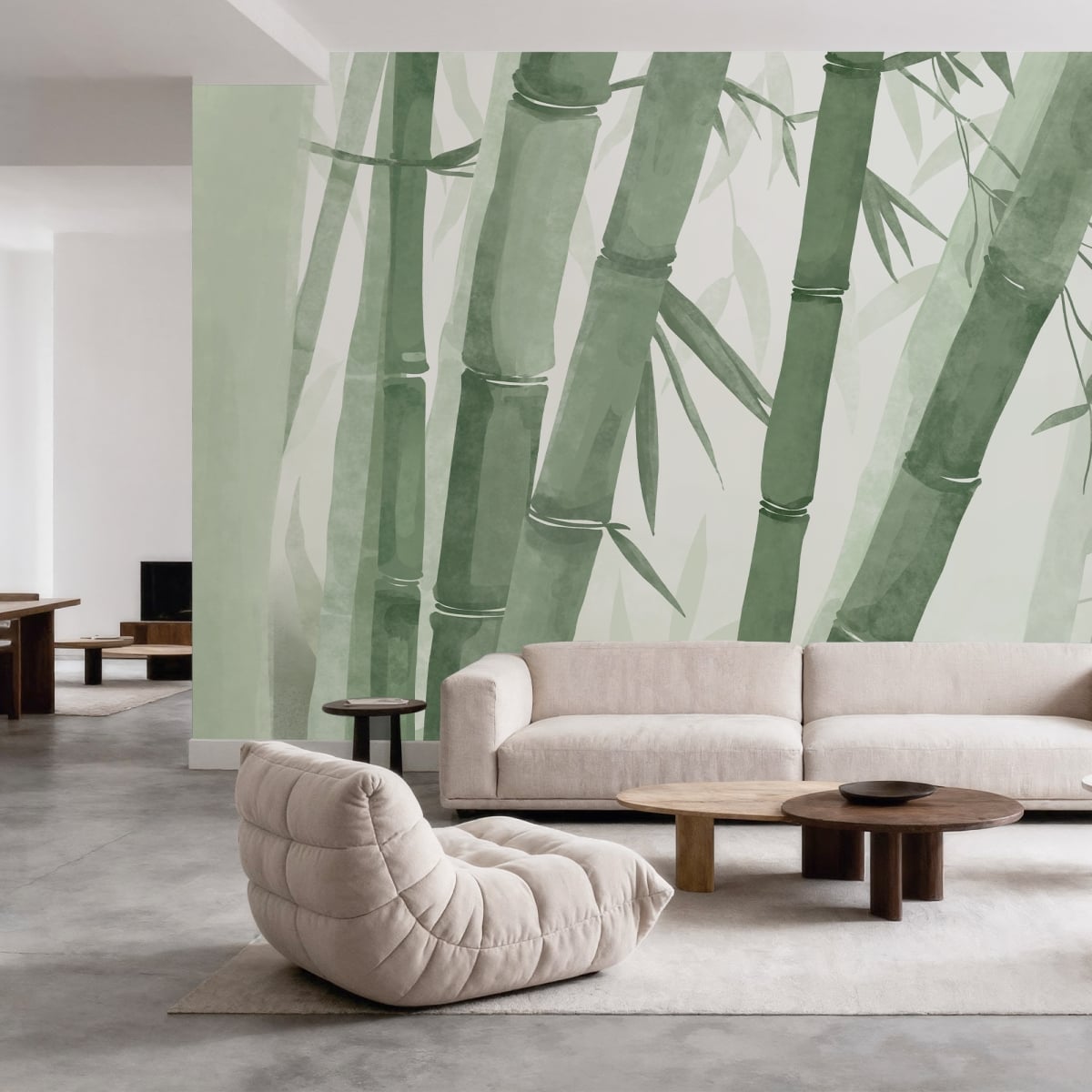 Elevate your interior design with our stunning Bamboo Grove wallpaper. This contemporary piece merges natural beauty with sophisticated artistry. The vertical lines of the bamboo stalks create an illusion of height, while the muted, sophisticated color palette adds a touch of timeless, zen-inspired chic.