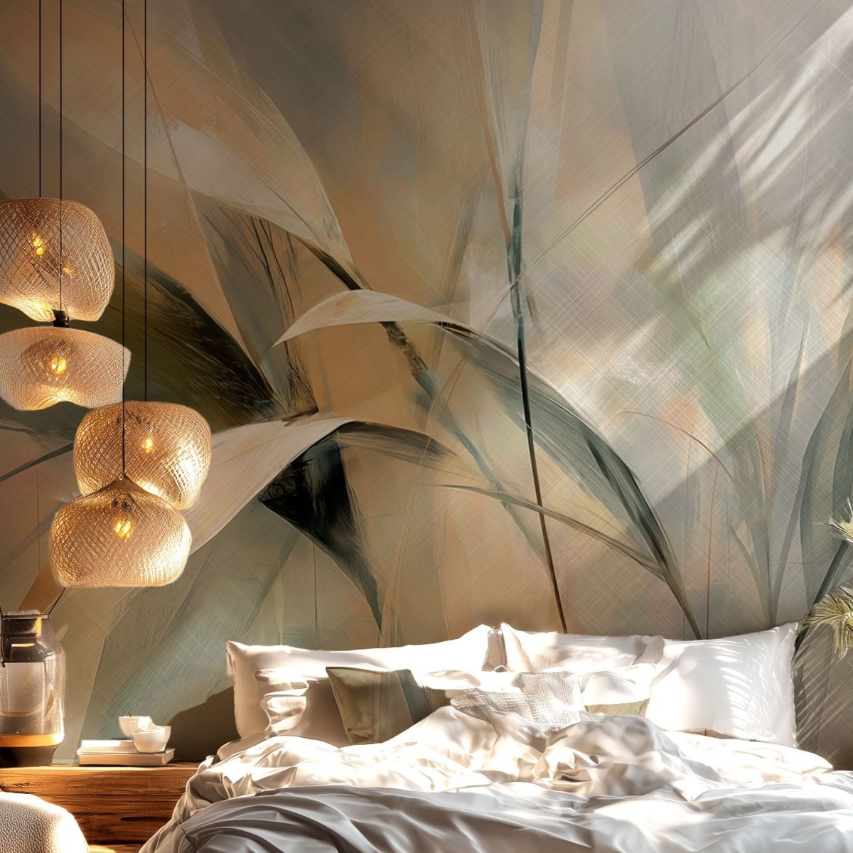 Delicate leaves shapes in colorful and beige enrich any room with warmth.