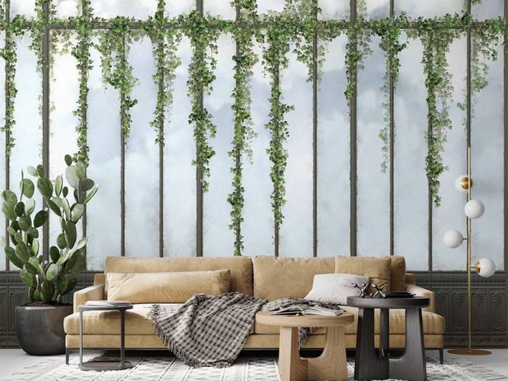 Put a large flower pattern into your living room and you will have a romantic candlelight dinner all the time with your loved one with this Summer Wind wallpaper! Moreover, test our Panoramic Greenhouse to create your own vintage and elegant royal garden in the house, where the combination of the greenhouse scenery covered by ivy plant beautifully. That design will be such a gorgeous panting for the higher wall.