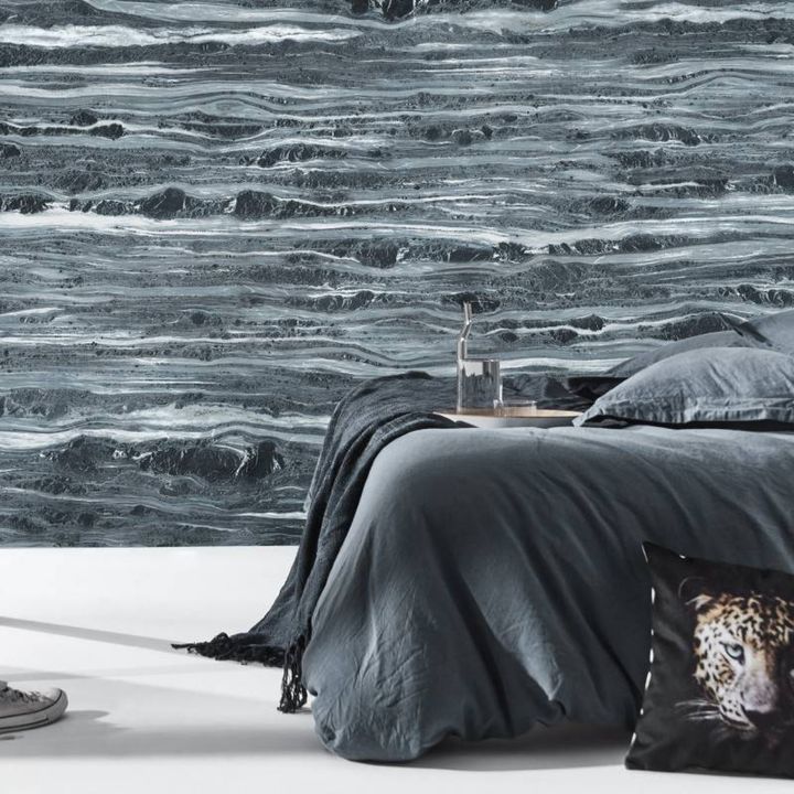 The subtle grey veins in this marble wallpaper help it tie together the grey elements in an interior, and is easy to pair with a variety of decor styles.