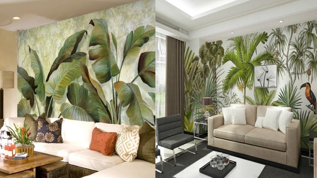 We always love living rooms that have a sense of personality and do not feel bland. That obviously does not mean an overload of color on every occasion. In the modern tropical living room, accents in blue and green are the most commonly used hues, while orange and coral colors are a popular tropical wallpaper choice this year.