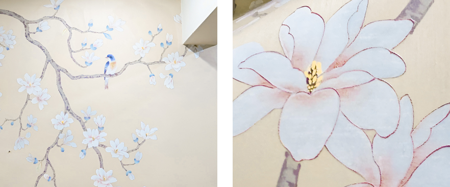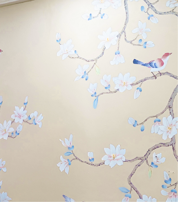 The installation process began with careful wall preparation to ensure a smooth and flawless surface for the wallpaper application. Our team measured the wall precisely and aligned each panel of the Chinoiserie wallpaper to maintain the continuity of its intricate patterns. During installation, special attention was given to pattern matching and clean edge finishing, ensuring the design flowed seamlessly across the wall. With professional techniques and attention to detail, the wallpaper was applied evenly, resulting in a polished and refined finish that enhances the living room’s overall aesthetic.
