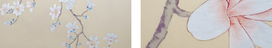 This Chinoiserie wallpaper features finely detailed motifs inspired by classic Eastern artistry. It combines delicate florals, graceful lines, and refined ornamental elements. Its subtle interplay of colour and pattern creates a sense of movement and sophistication.