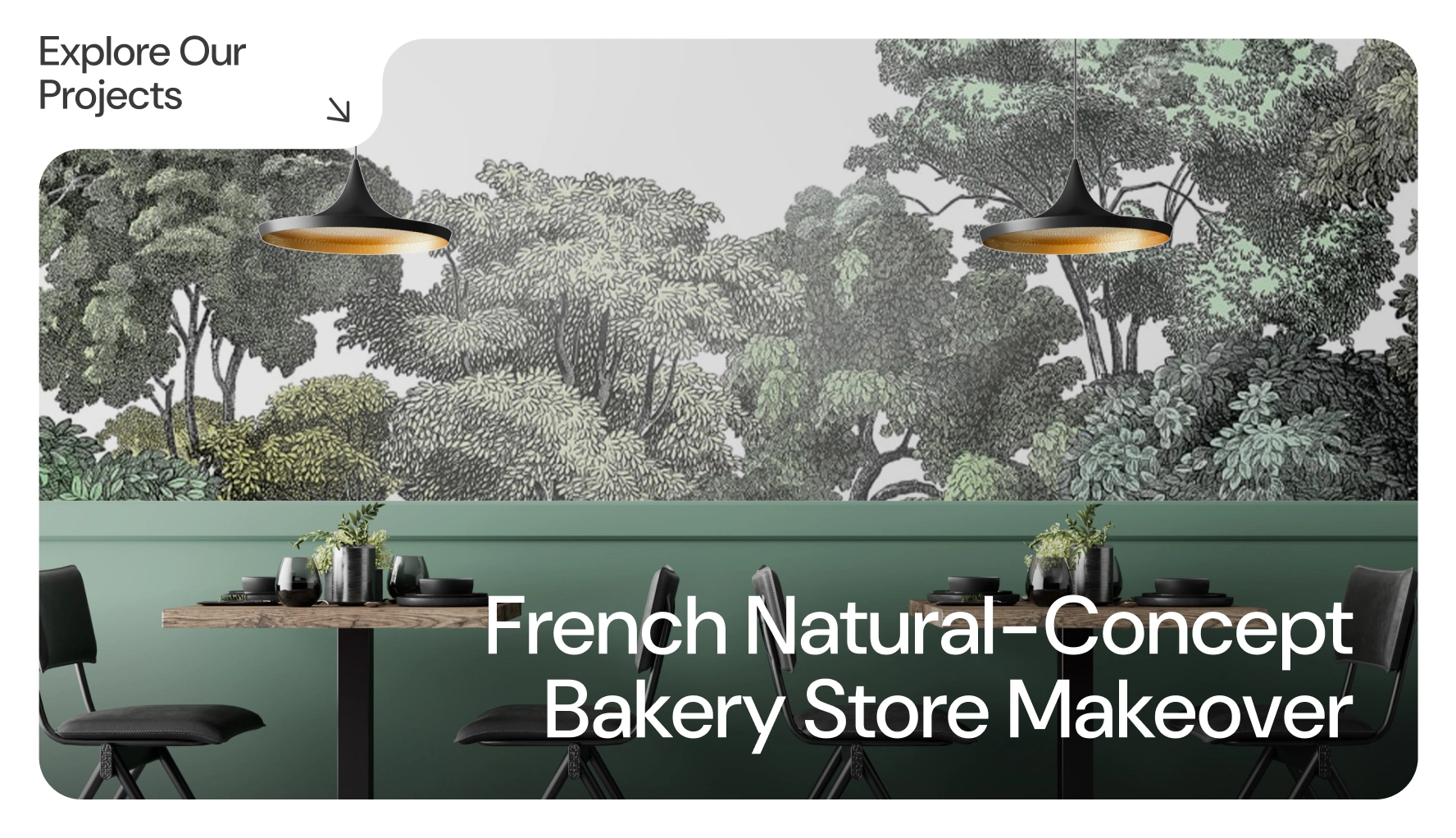 On this page, you will find a variety of commercial projects completed by our team, from offices and restaurants to retail stores and more. Each project showcases unique styles, industries, and creative solutions tailored to the client's needs. We also collaborate closely with interior designers and architects to support their commercial design wallpapers and flooring. We help bring every vision to life with precision and flair, with reliable supply and professional experience.