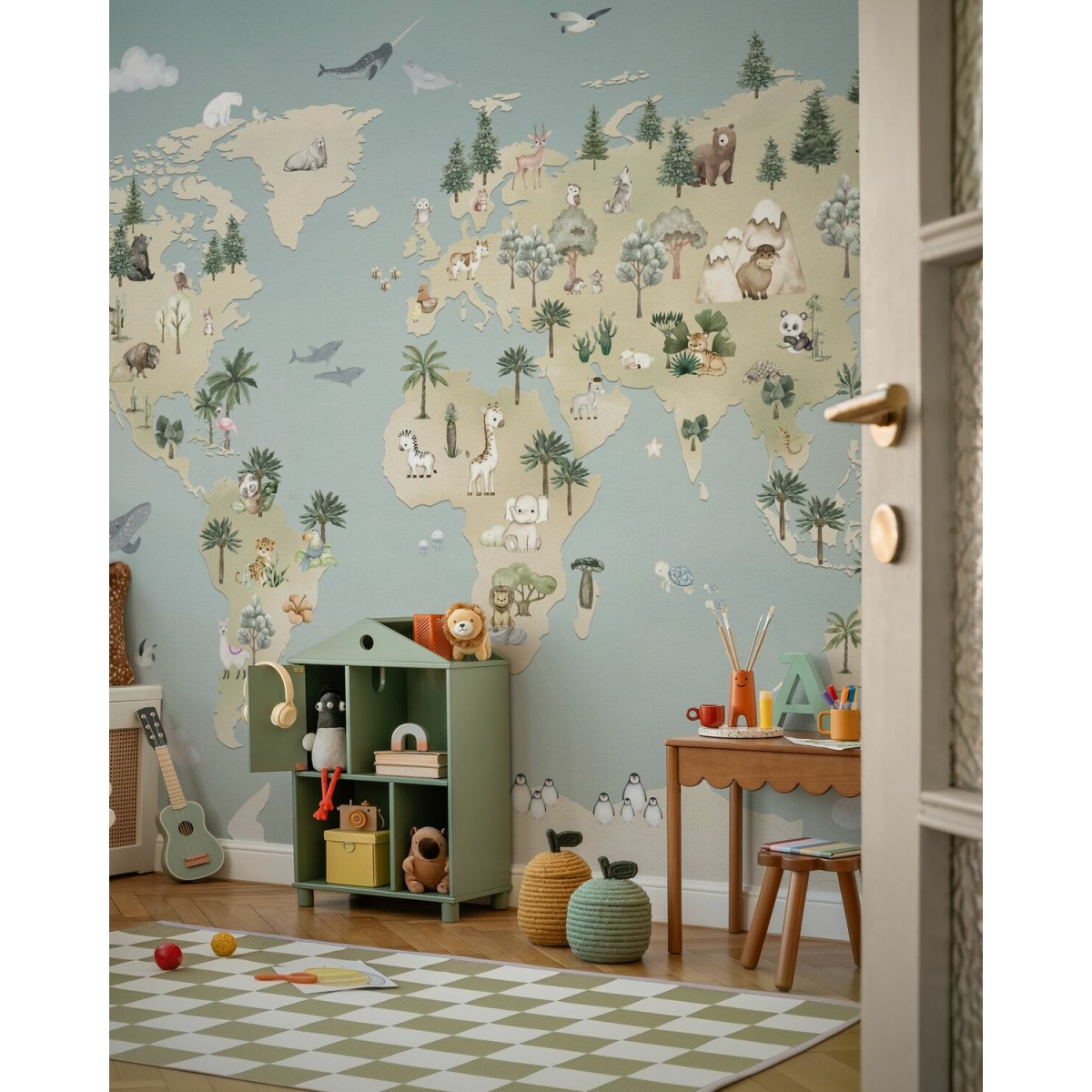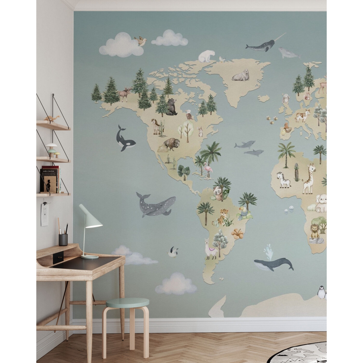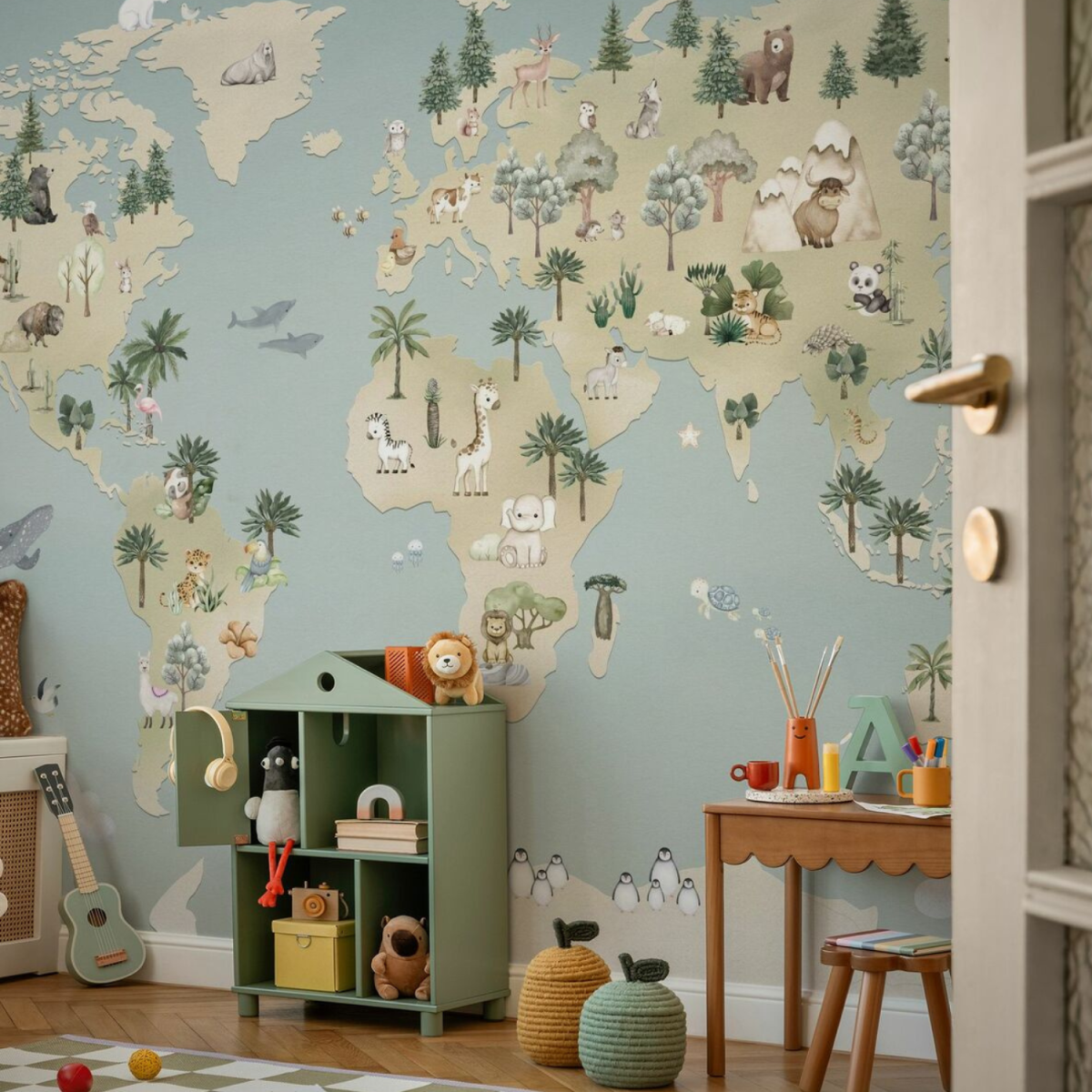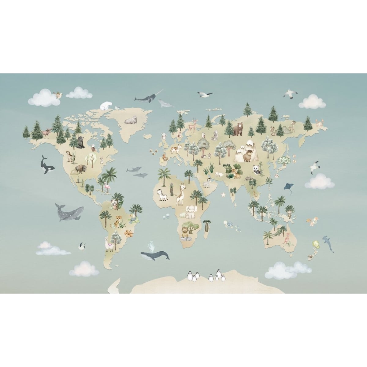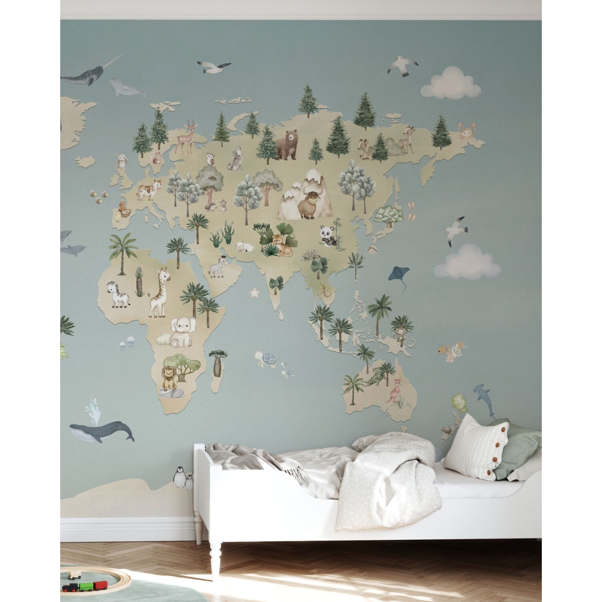 Oliver Robins is a gentle boy. This collection is filled with adventurous dreams. Designed for impressionable preschool children. With soft colors and playful stories, the Oliver Robbins collection is perfect for creating a warm, cozy space that encourages your child to explore. Watercolor-style mural wallpaper. Designed