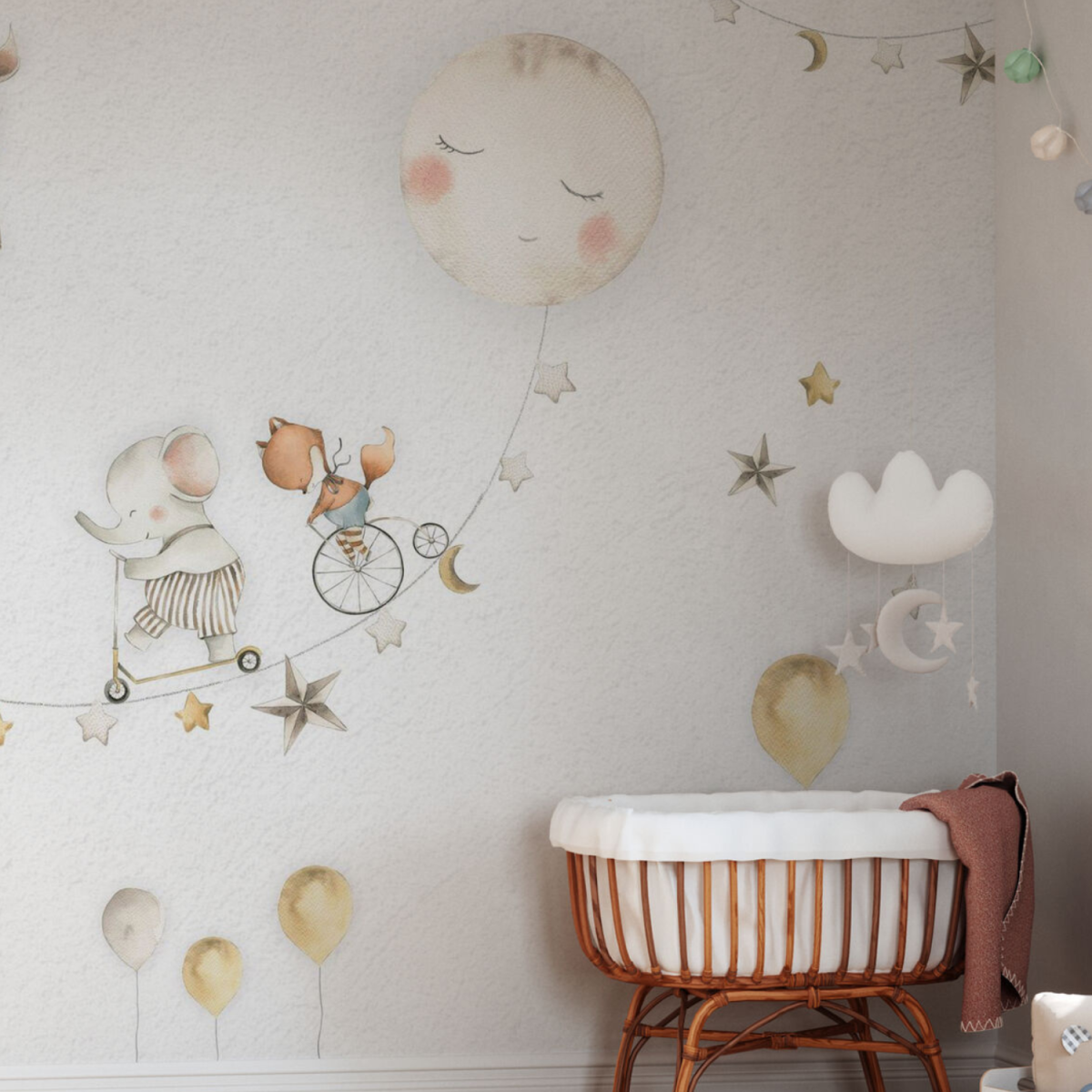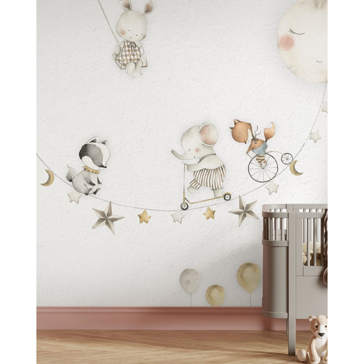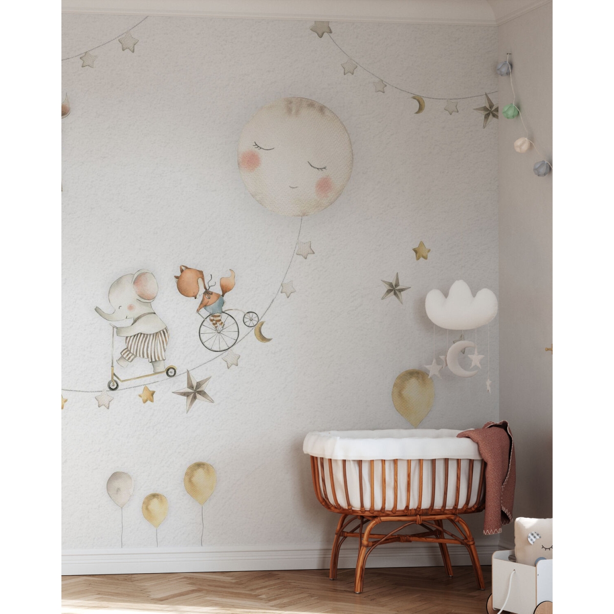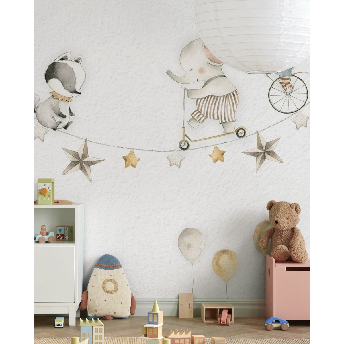Oliver Robins is a gentle boy. This collection is filled with adventurous dreams. Designed for impressionable preschool children. With soft colors and playful stories, the Oliver Robbins collection is perfect for creating a warm, cozy space that encourages your child to explore. Watercolor-style mural wallpaper. Designed