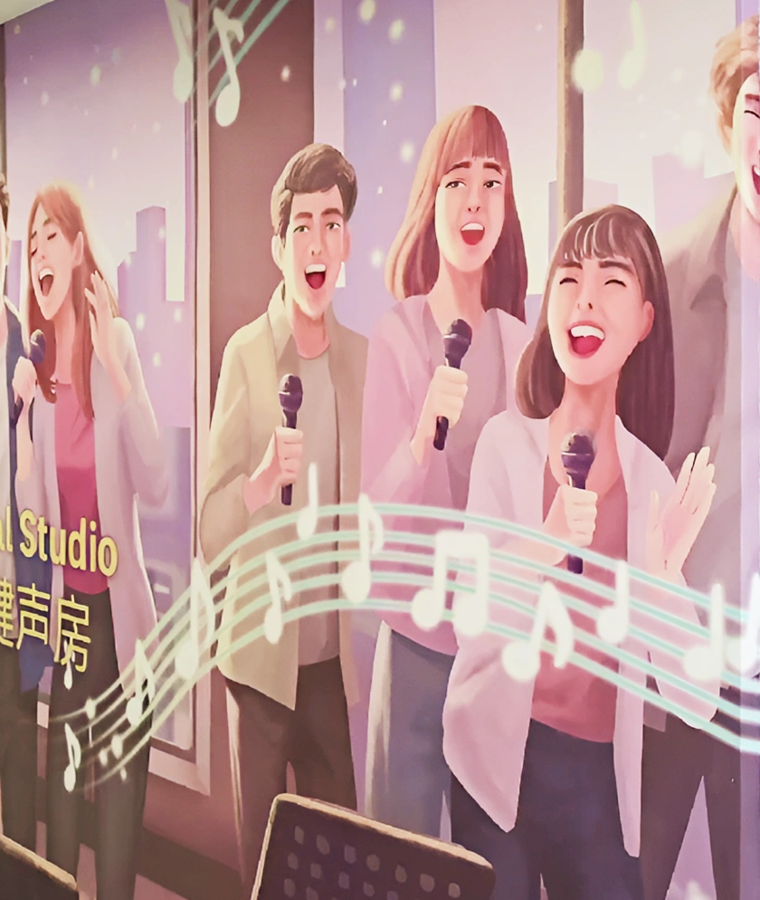 In this commercial project, Honpo delivered custom mural wallpaper designed for karaoke designed specifically to enhance both the outdoor and indoor karaoke spaces. We aimed to create a strong atmosphere that is essential for attracting customers and business purposes. By using custom mural wallpaper for karaoke, the space feels more immersive, expressive, and aligned with the brand identity. It can create an environment that encourages guests to stay longer and enjoy the experience with your business.
