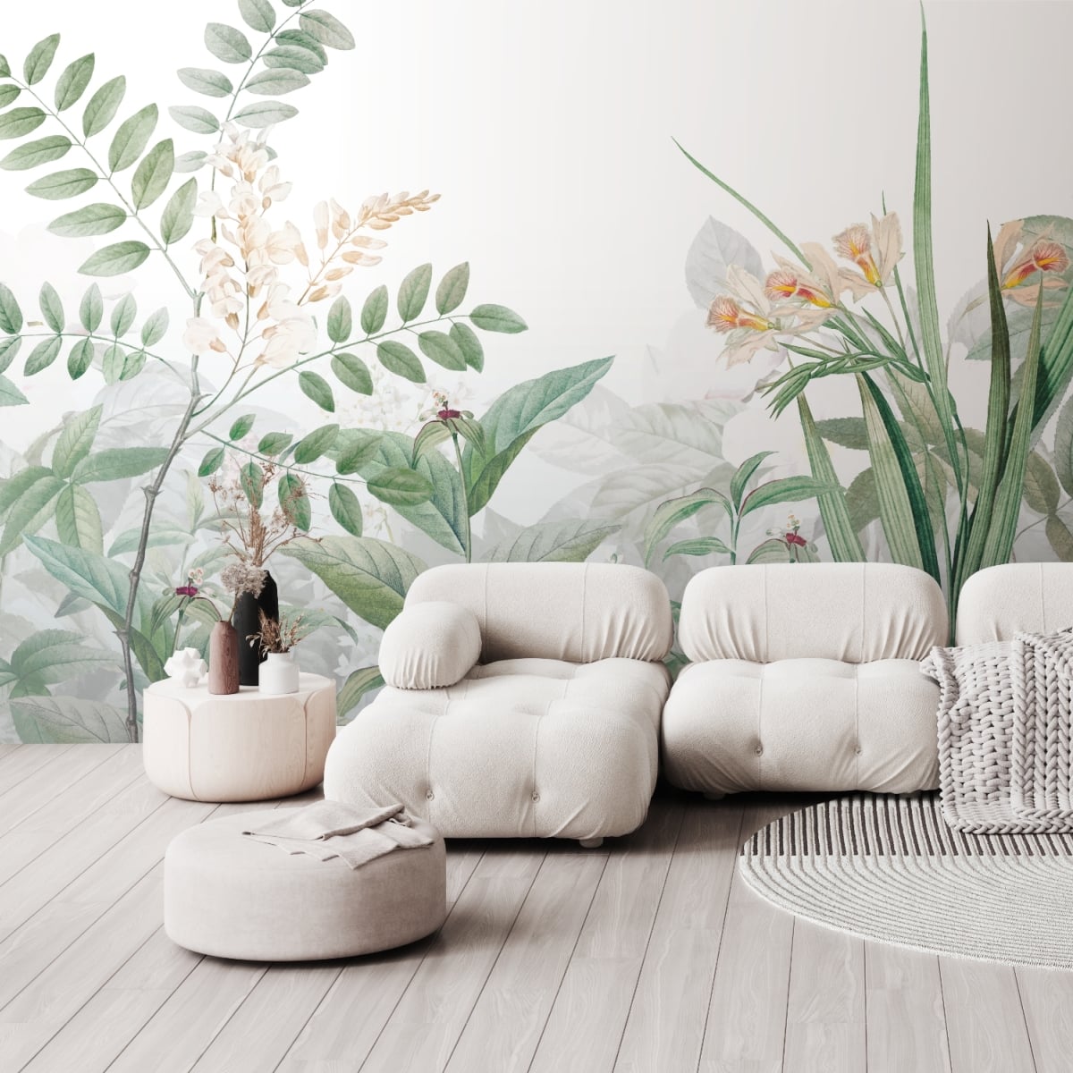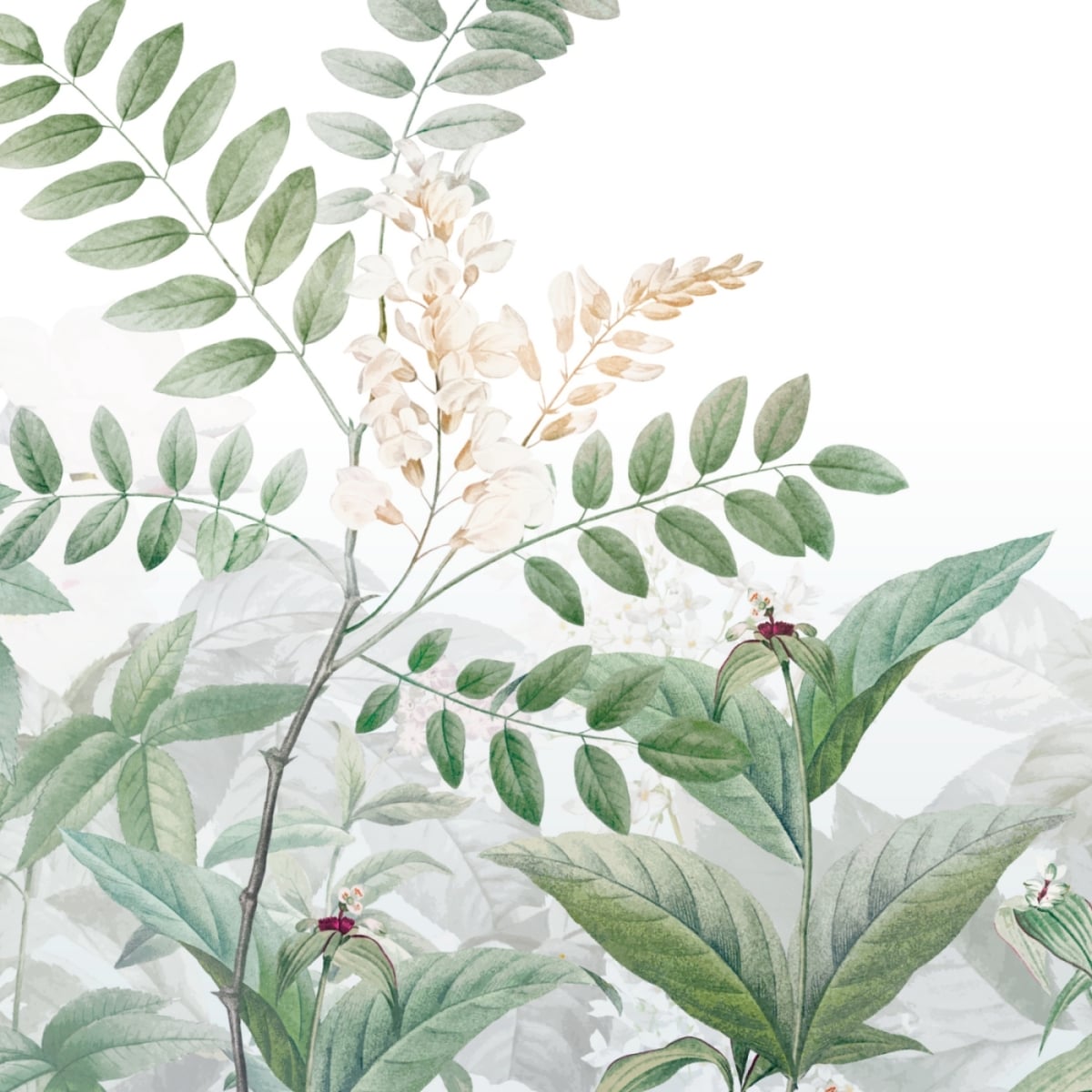 The nature inspired imagery of tranquil garden with whimsical plants thriving is the perfect wallpaper that will bring serenity into your home