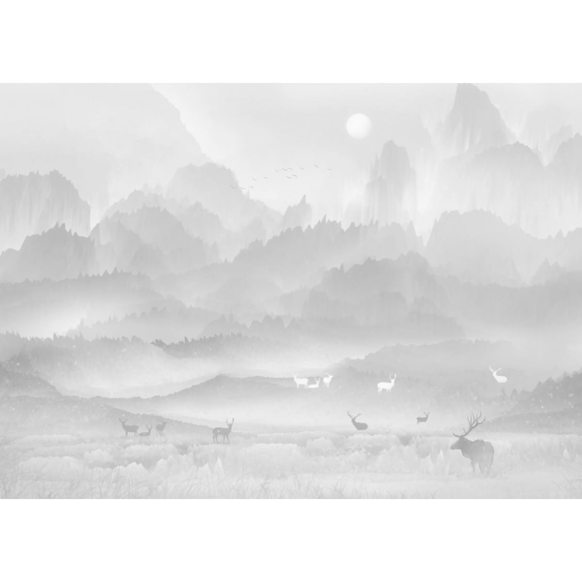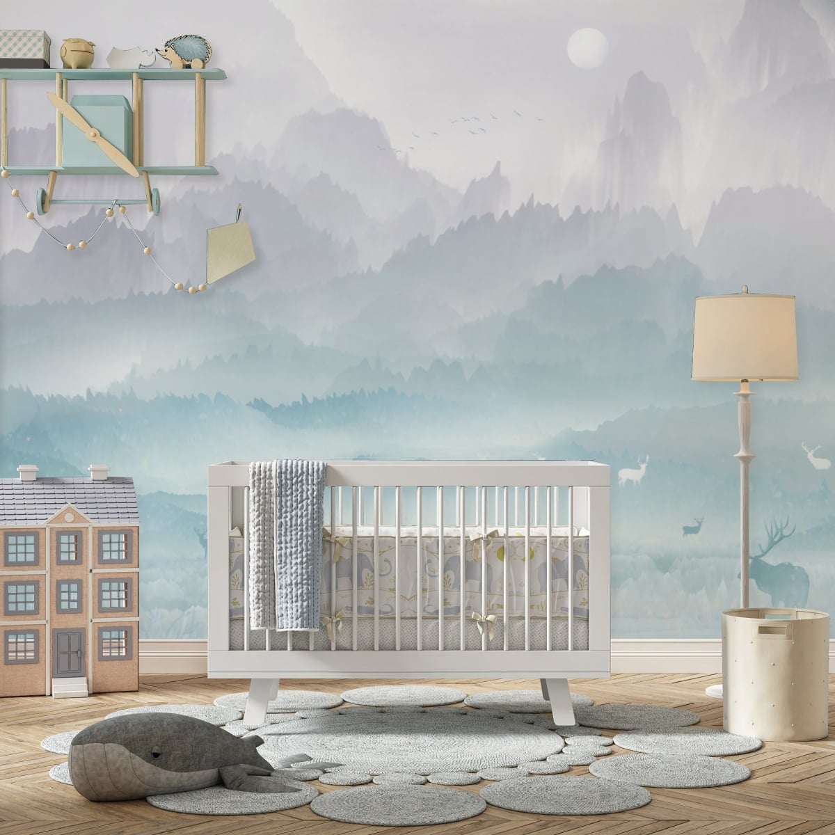 The Dreamland Ridge wallpaper offers a unique take on the popular misty mountain trend. Using a delicate, watercolor blend of blue, grey, and lavender, the scene is layered to create visual depth that makes your room feel more expansive.