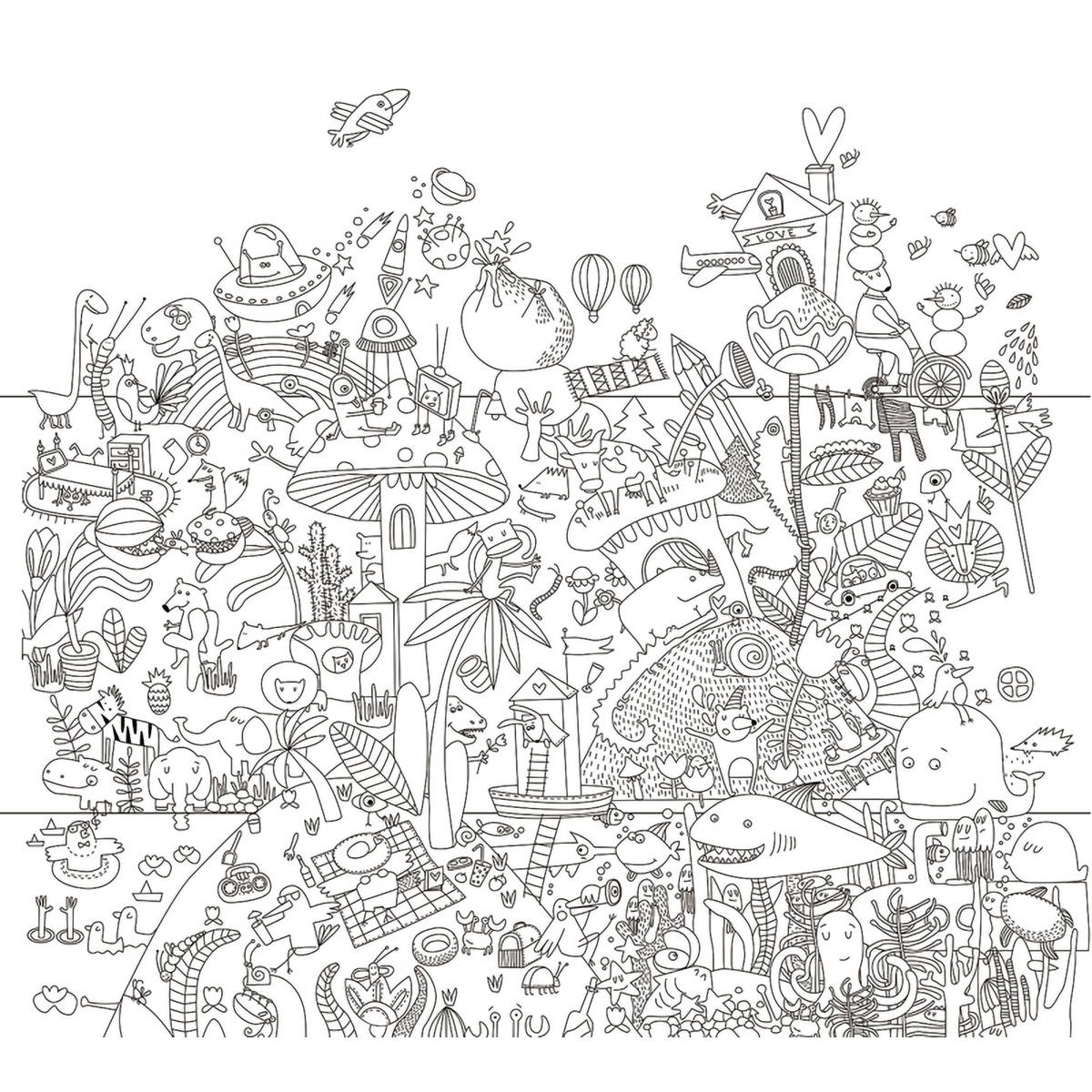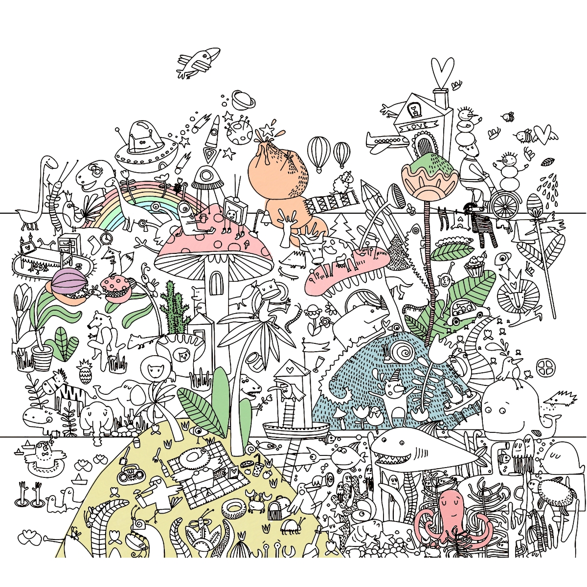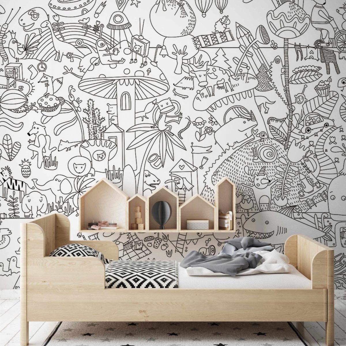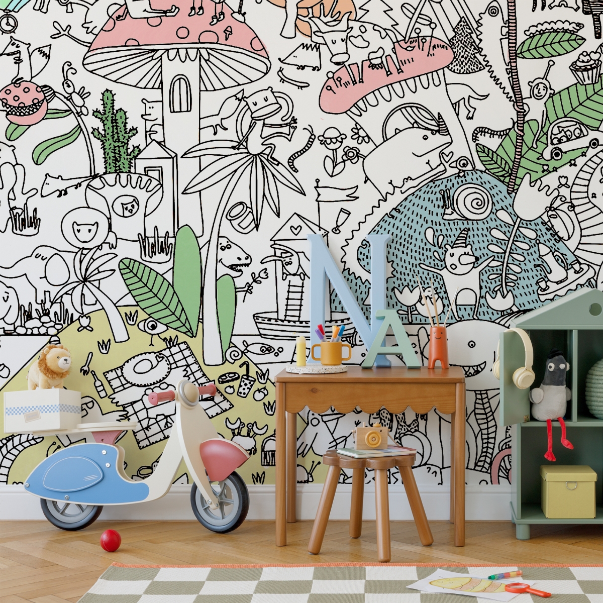 Step into a world where imagination knows no bounds! This intricate doodle mural is a treasure trove of whimsical characters, from deep-sea whales and smiling sharks to space-traveling aliens and forest-dwelling dinosaurs. Every corner tells a new story, making it the perfect backdrop for a nursery or playroom where children can spot something new every single day. It’s more than just a wall covering; it’s an invitation to explore.