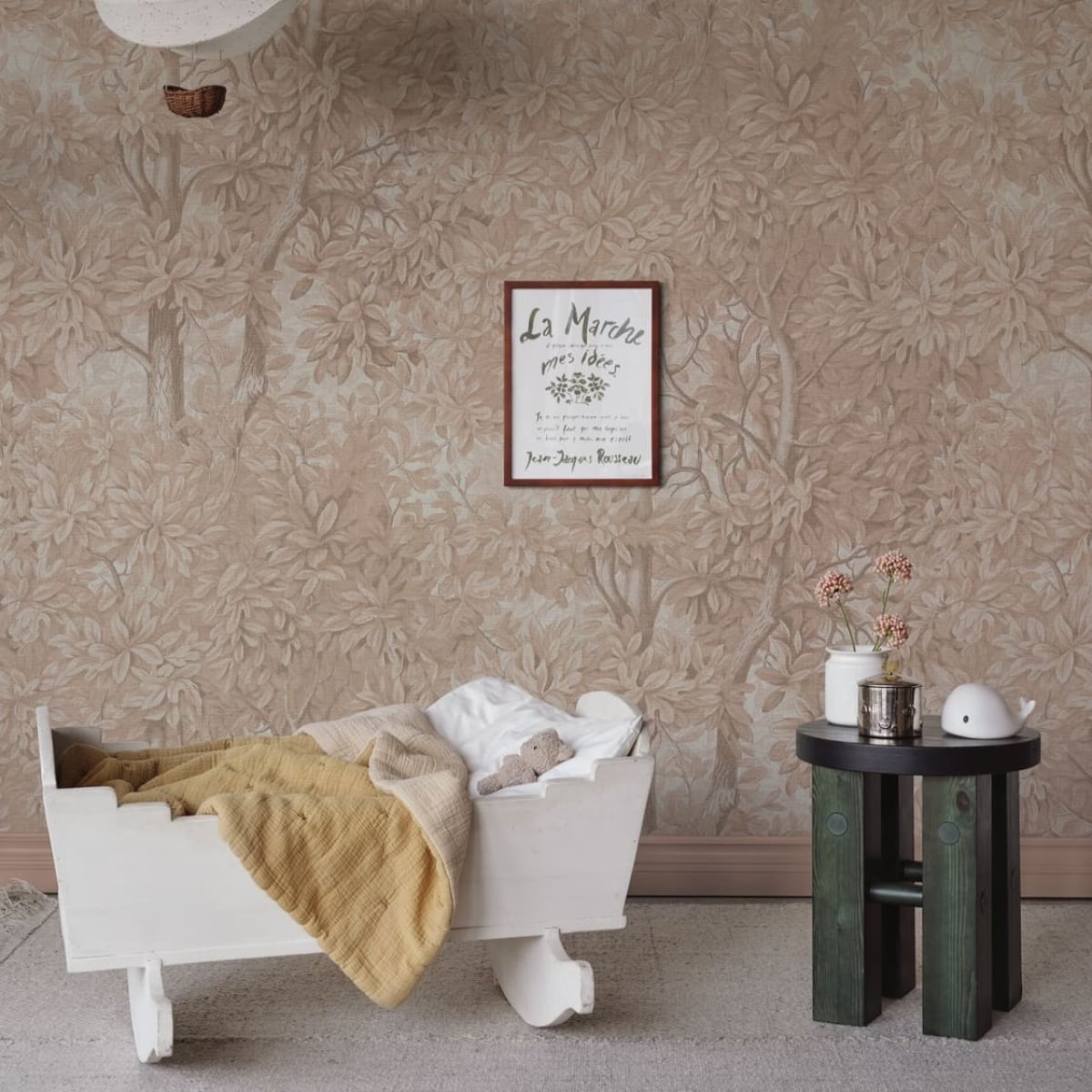 Romantic vintage look where the rubbed textile surface meets the splendor of the passionflower. Designed by Johanna Vestlin