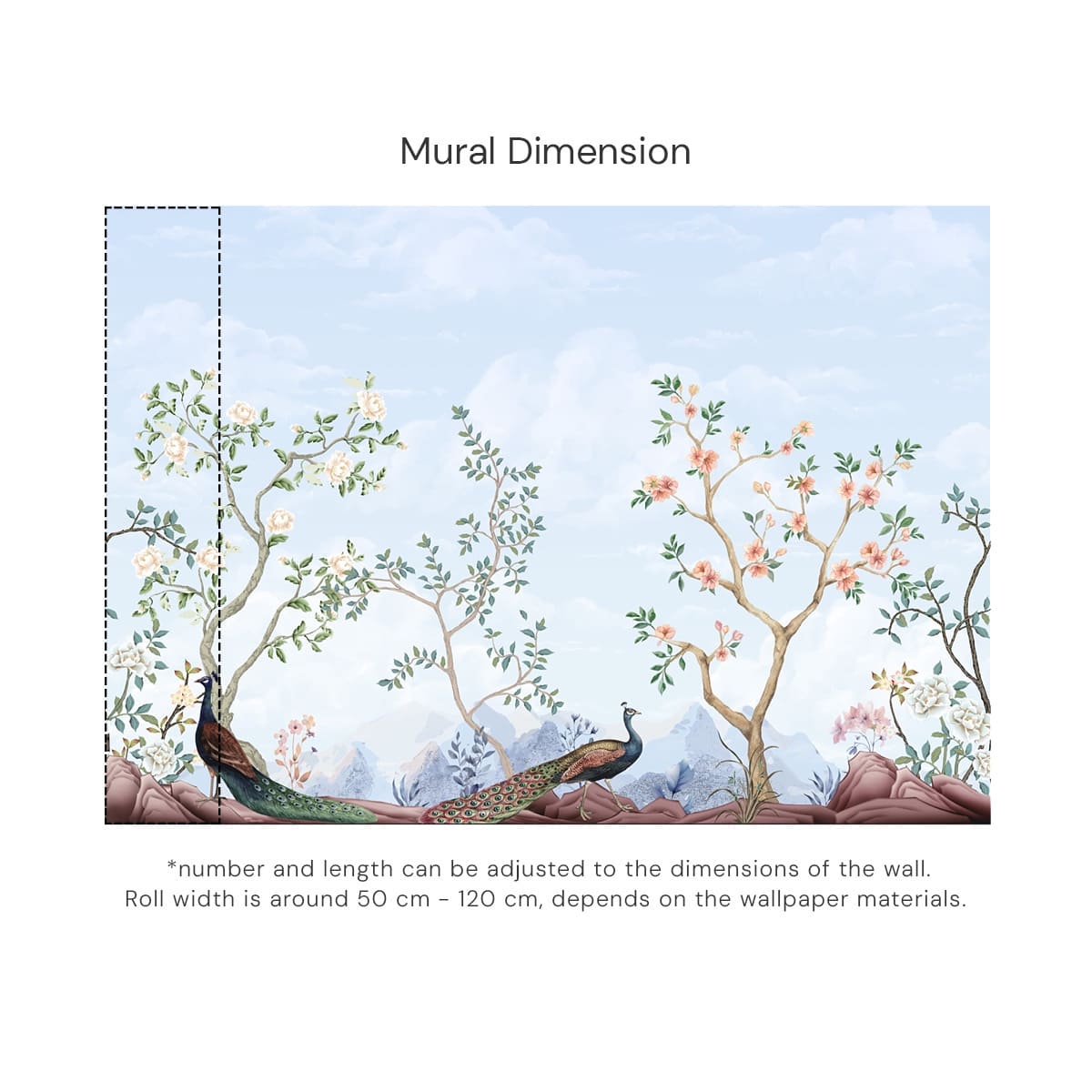 This chinoiserie mural features beautiful trees arrangement with calming style that feels warm and welcoming. The gentle mix of the color tones creates a charming yet refreshing chinoiserie scene that's perfect for any room.