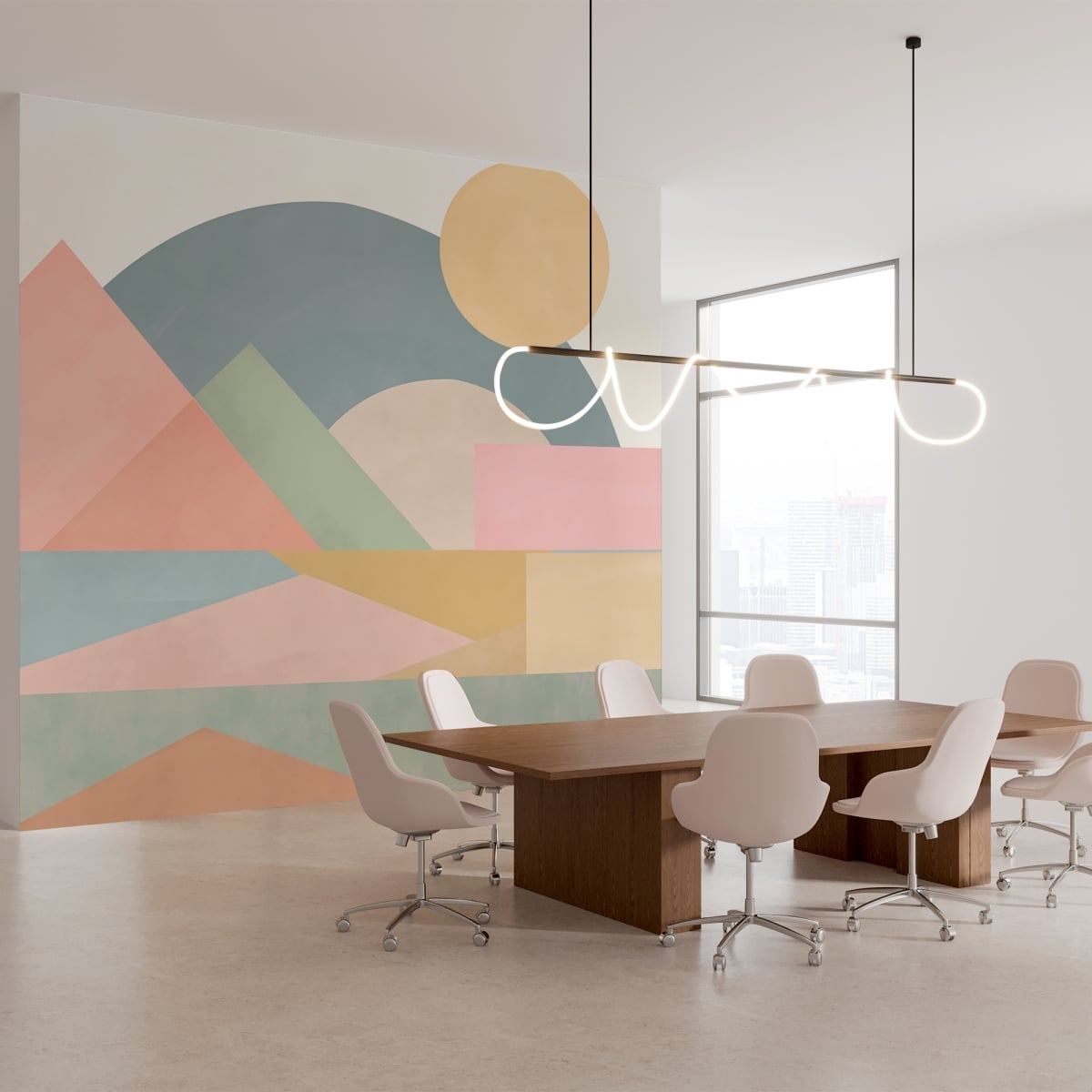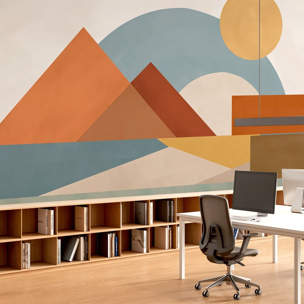 Minimalism meets botanical warmth in the Linear Peak mural. By stripping the landscape down to its essential forms, this design creates a sense of calm and order. The earth tones are carefully selected to complement natural wood furniture and neutral textiles, making it a versatile and stylish backdrop for any modern interior.