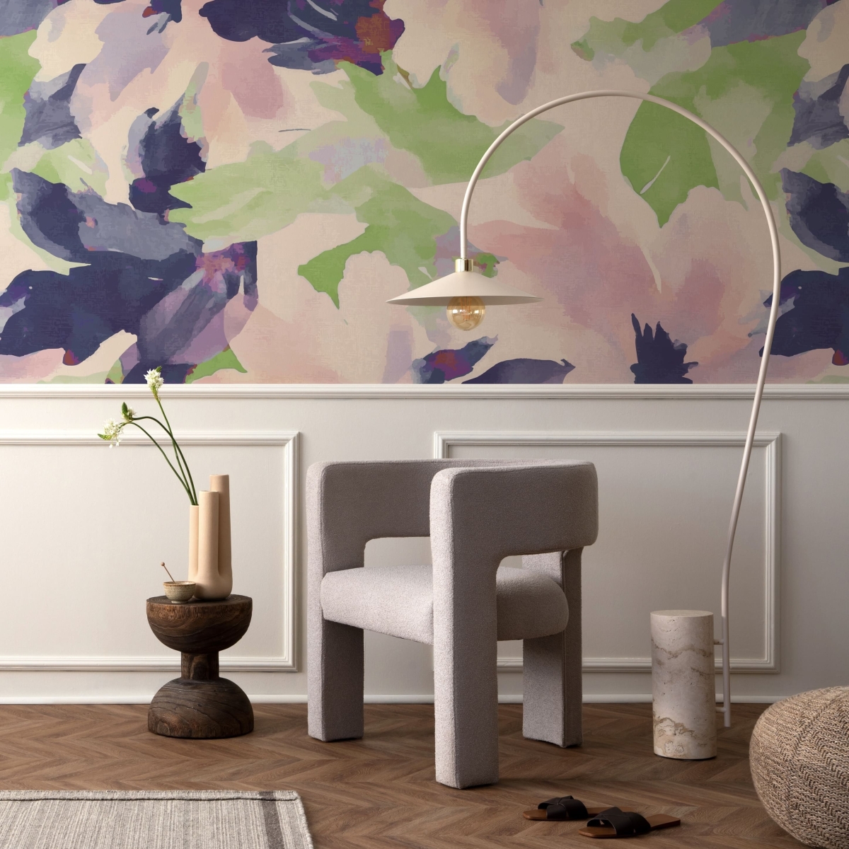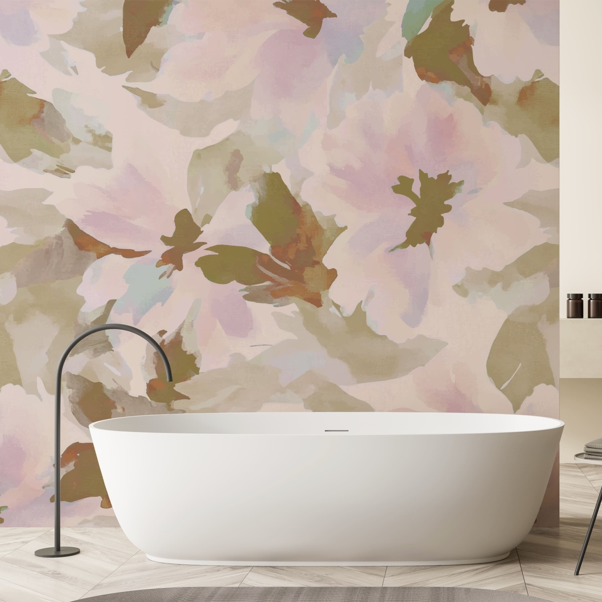 Bold yet graceful, this abstract oversized floral mural transforms flowers into a statement of contemporary art. The flowing brushstrokes and large-scale composition add movement and depth to the wall. Designed to elevate interiors with a touch of dramatic beauty and artistic flair.
