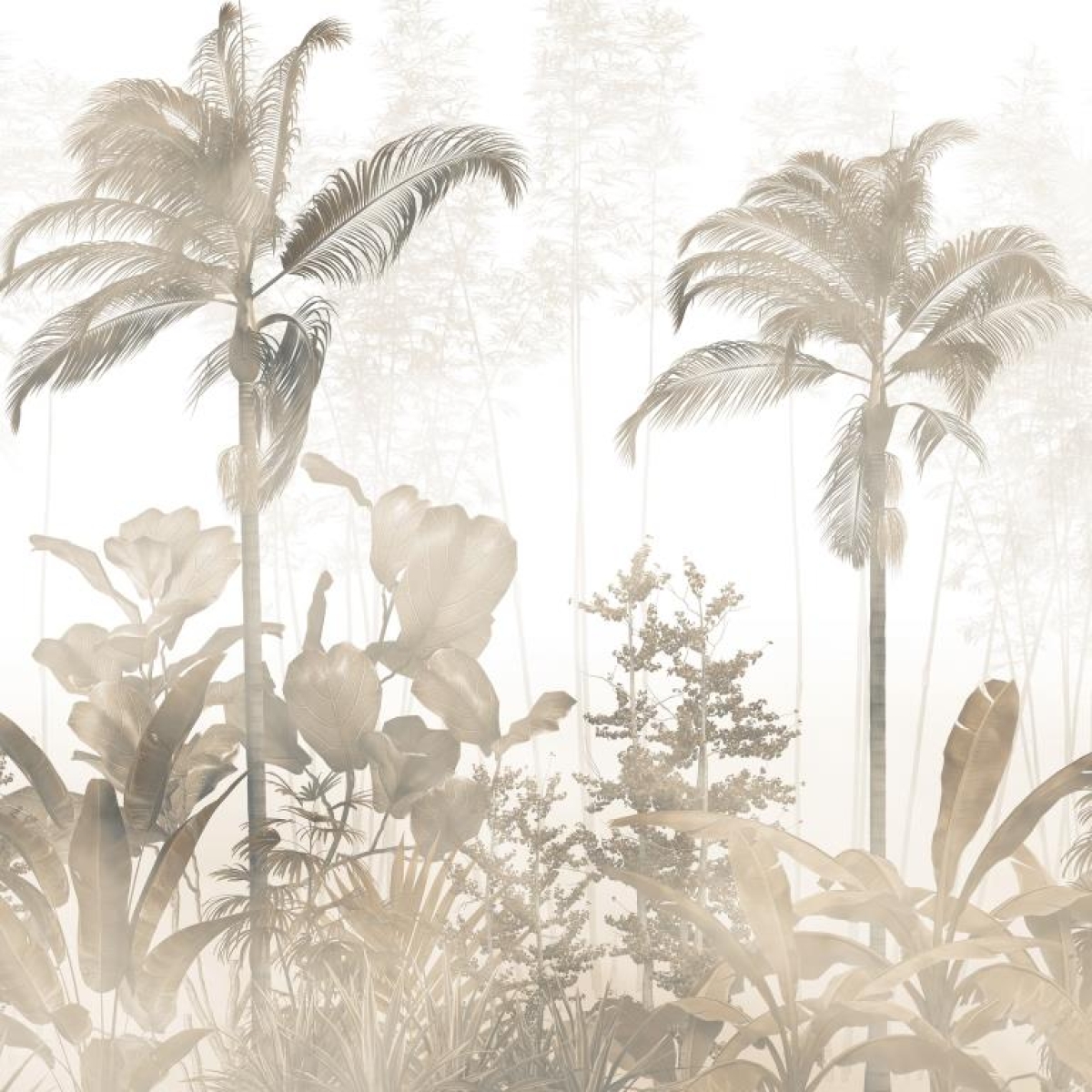 Embrace subtle sophistication with PRD 112, a wallpaper that blends tropical foliage and tall palms in elegant sepia tones. The misty, layered composition evokes a calm, ethereal jungle atmosphere—perfect for modern, minimalist, or neutral-toned interiors.