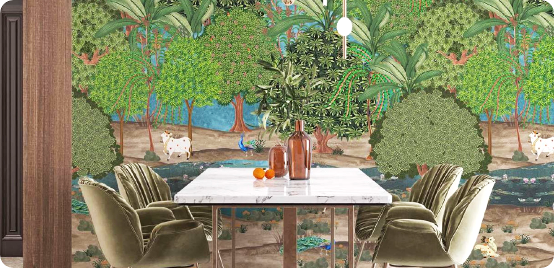 The Prakriti collection invites you to step into a realm where nature’s splendour meets traditional craftsmanship through a refined and artistic wallcovering series.
