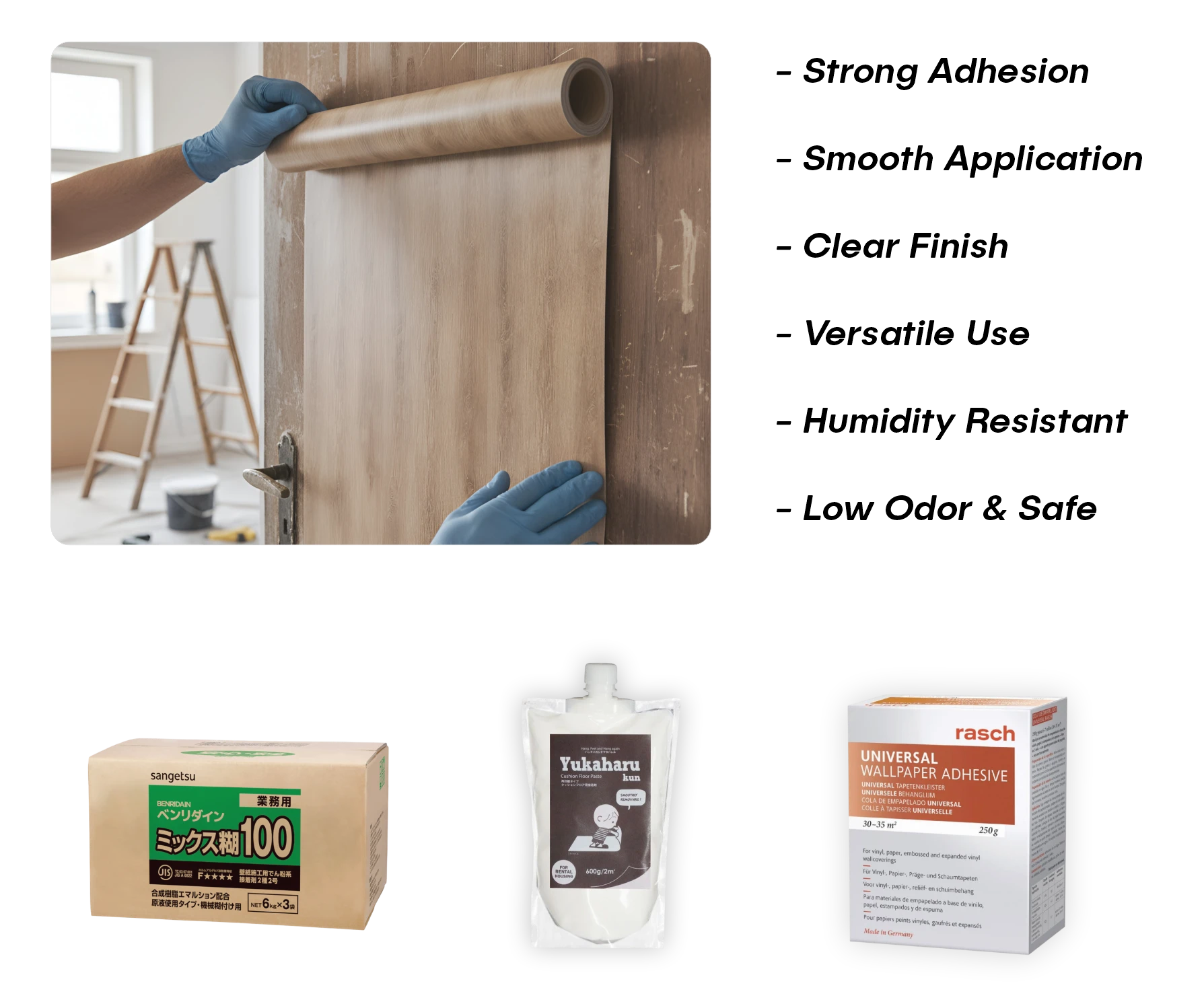 This adhesive provides consistent performance and effortless application. It spreads easily, sets firmly, and dries clear, leaving your walls flawless and beautifully finished. With our wallpaper adhesive, every installation becomes smoother, faster, and more durable — just the way it should be.