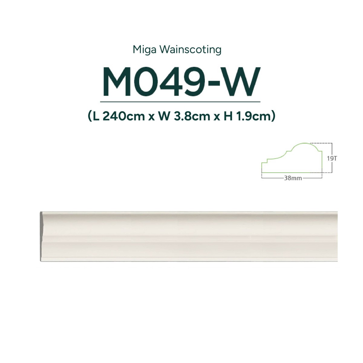L 240cm X W 3.8cm X H 1.9cm