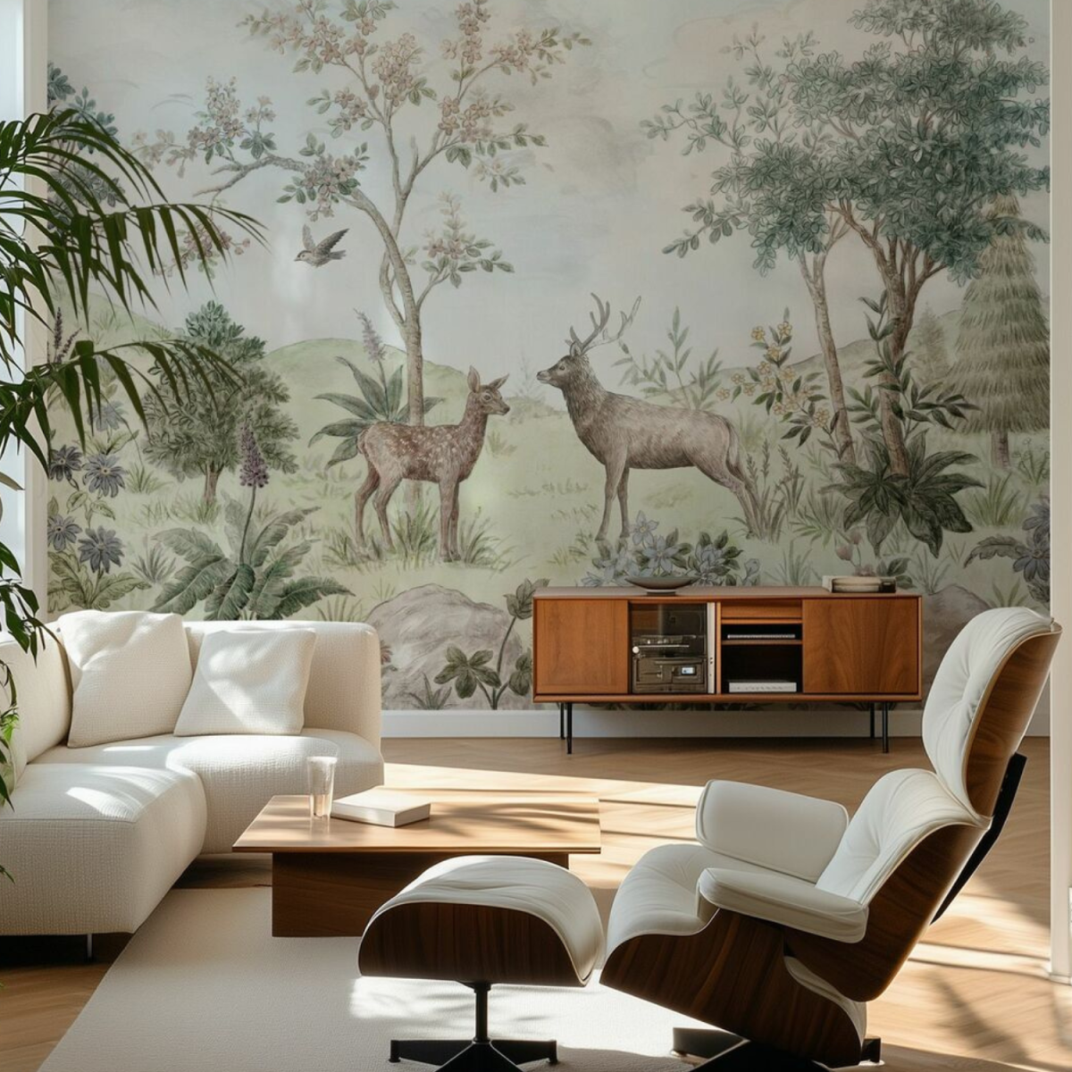 Oliver Robins is a gentle boy. This collection is filled with adventurous dreams. Designed for impressionable preschool children. With soft colors and playful stories, the Oliver Robbins collection is perfect for creating a warm, cozy space that encourages your child to explore. Watercolor-style mural wallpaper. Designed