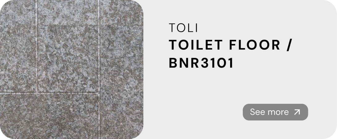 For this flooring, our client actually used the same material as in another toilet, the Toli BNR3101 safety flooring. This flooring offers a modern and cohesive design that matches the overall bathroom interior. Moreover, the darker textured tones make the space feel elegant and warm. Even though we used different color tones for the two toilets, the result is still perfect.
