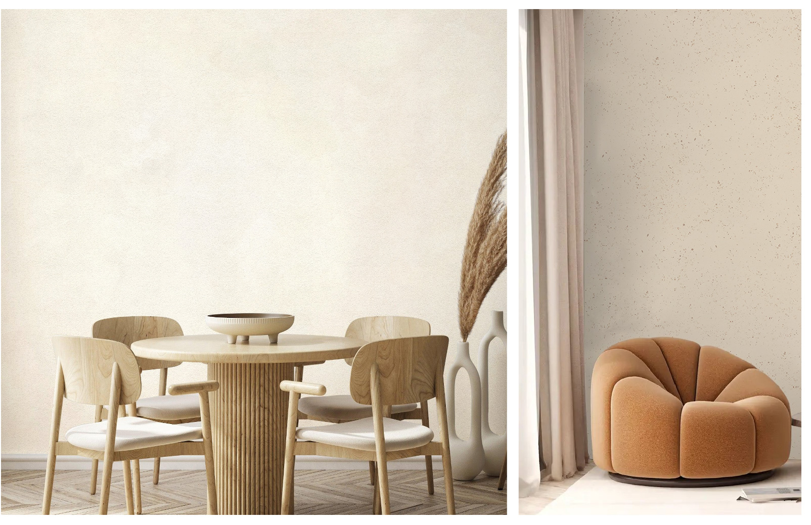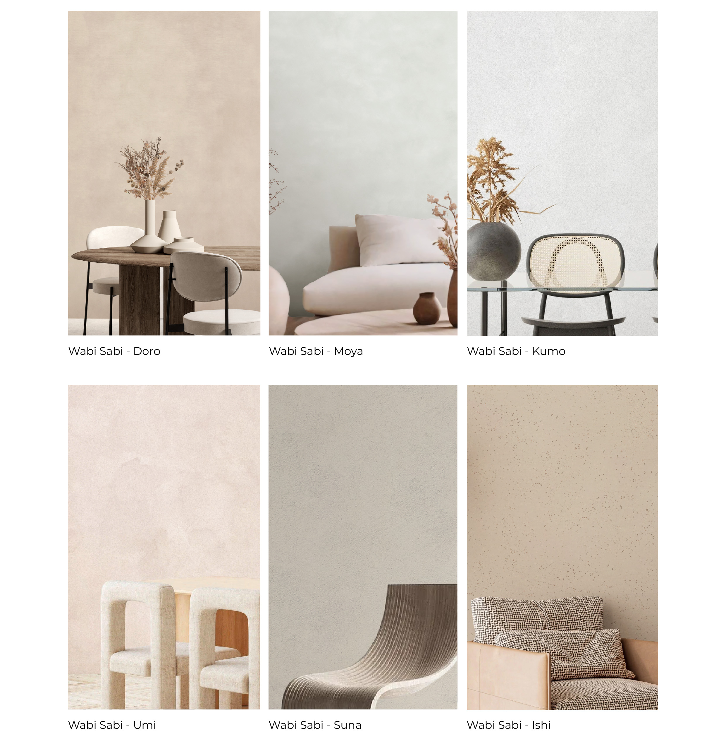 Wabi Sabi or chalk wallpaper offers a soft, matte finish and natural colors. It can mimic a combination of the aging process of plaster walls, wabi-sabi interior style, or industrial interior design. Additionally, chalk wallpaper exudes old-world charm while complementing various interior styles, from rustic to contemporary.