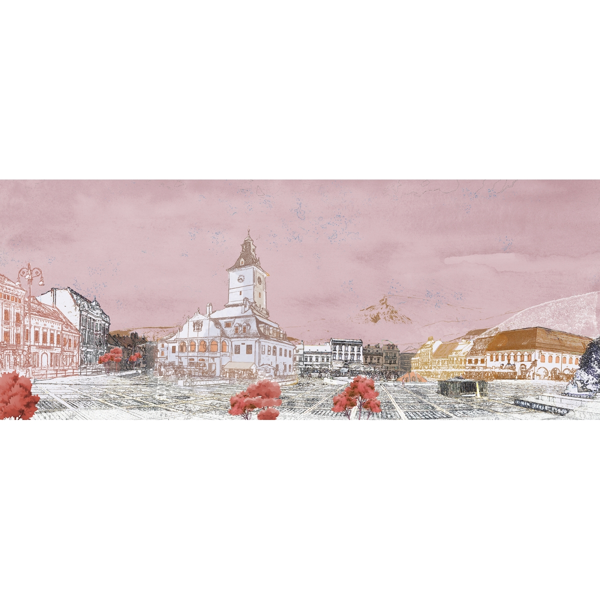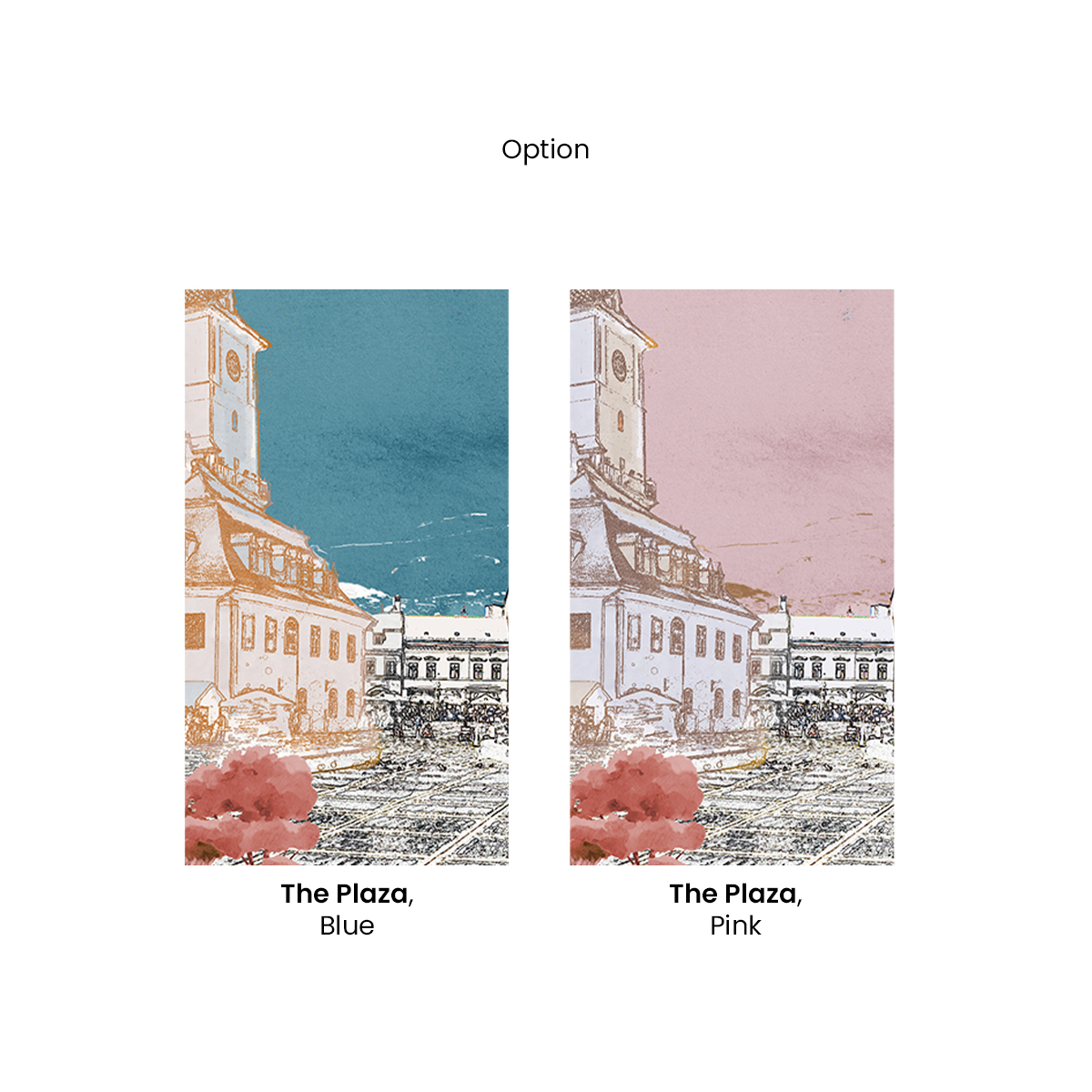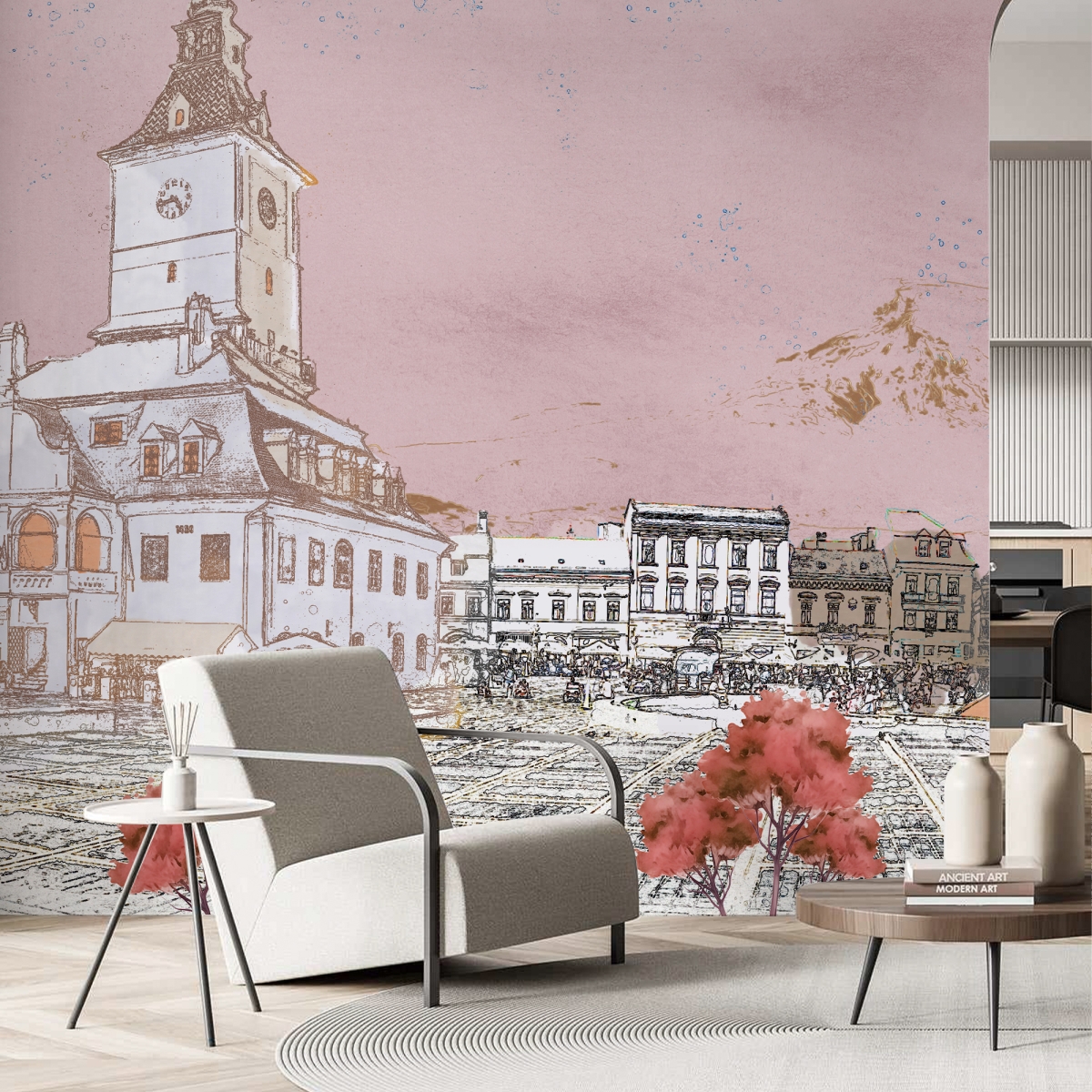 Capture the mood of the city. "The Plaza" is more than just a wall covering; it’s an atmospheric journey. The contrast between the warm, terracotta tones of the buildings and the cool, teal-blue sky evokes the feeling of a city at dusk. This mural adds a sense of grand scale and intellectual curiosity to any space, making your walls feel like a curated gallery piece.