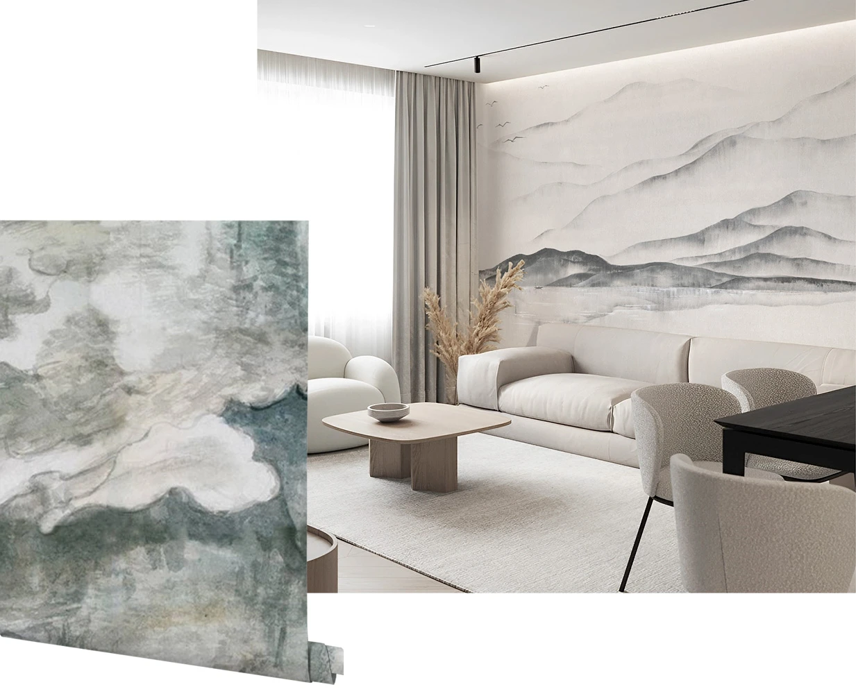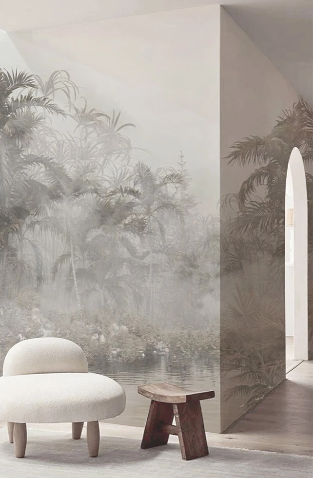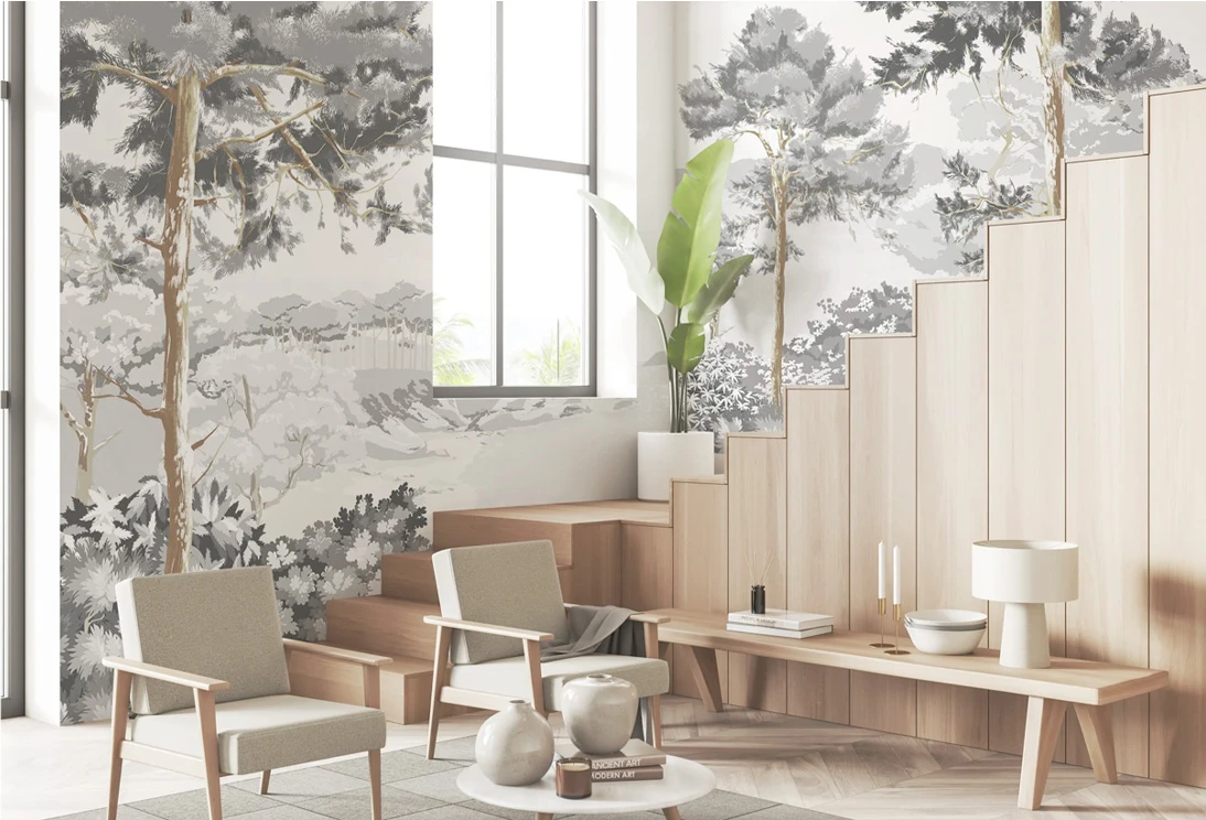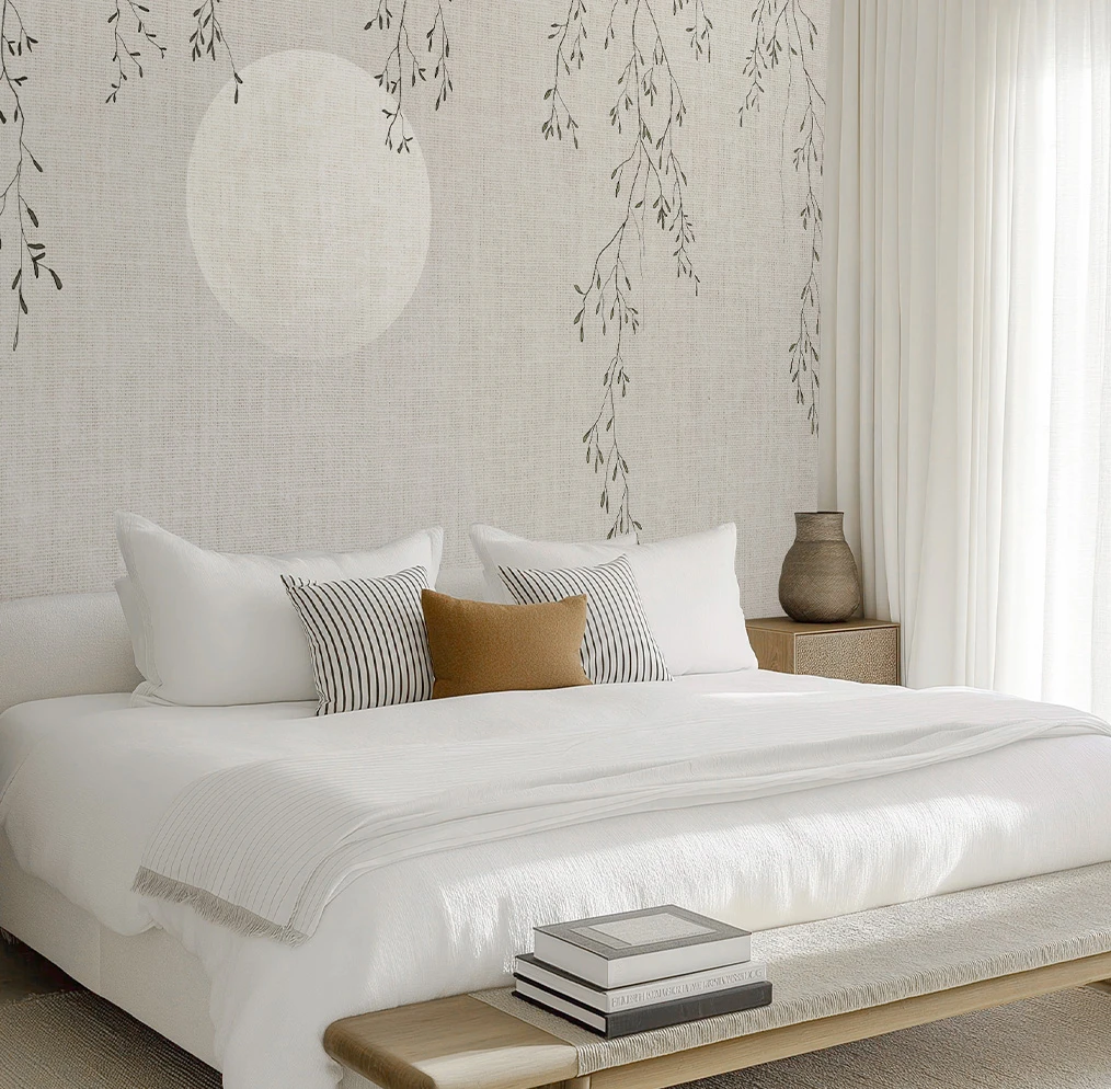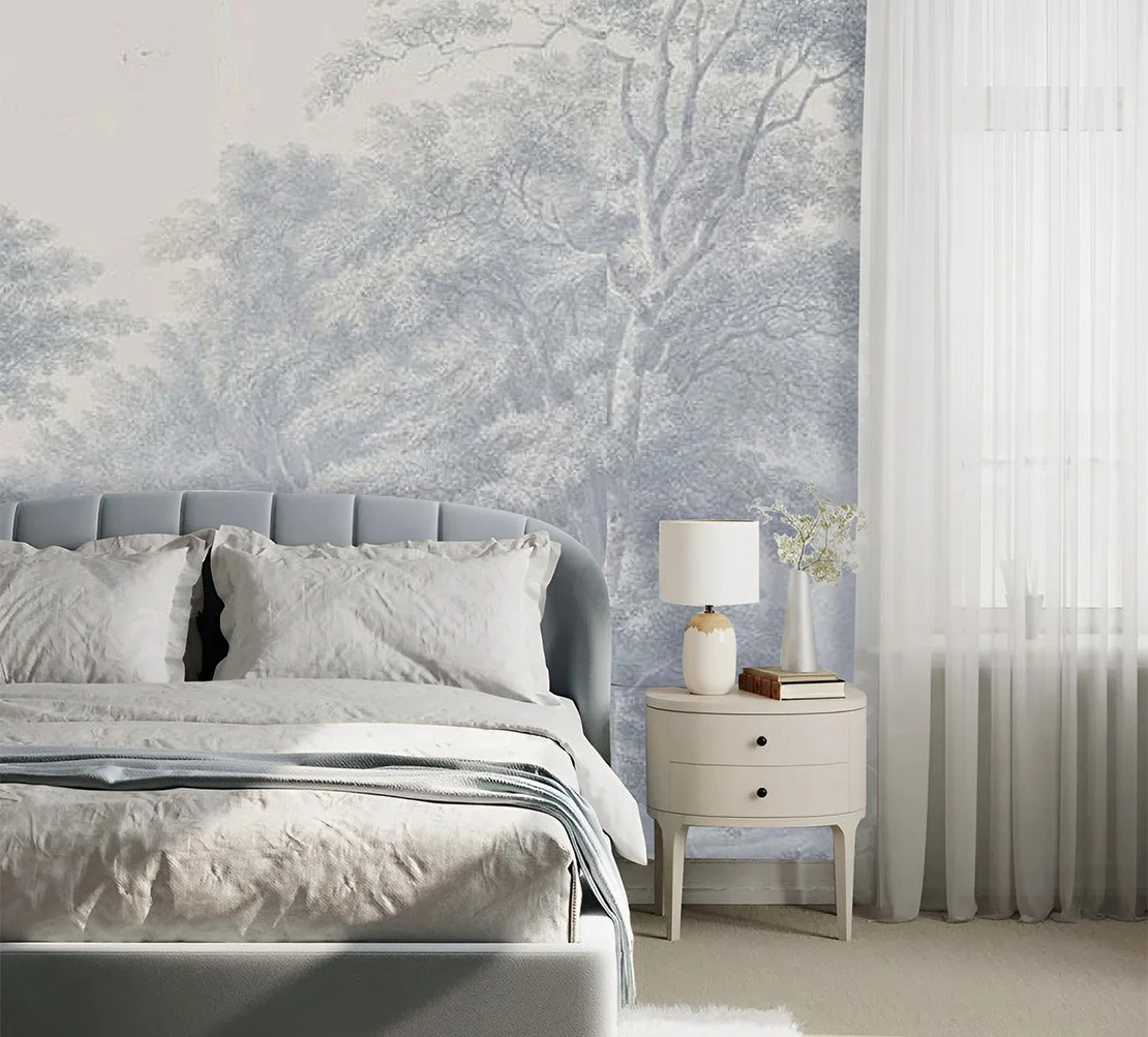 Enhance relaxation with mural wallpaper in calming colors. Like a gray color palette that offers a simple and elegant touch for a cozy ambiance.