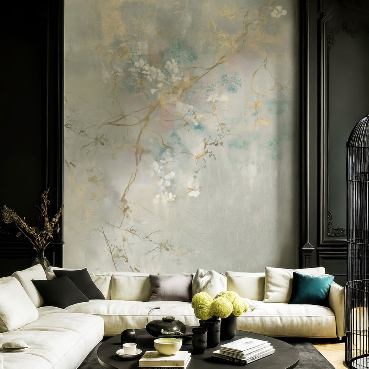 Layered tropical shapes with tactile elegance bring a relaxed luxe mood.