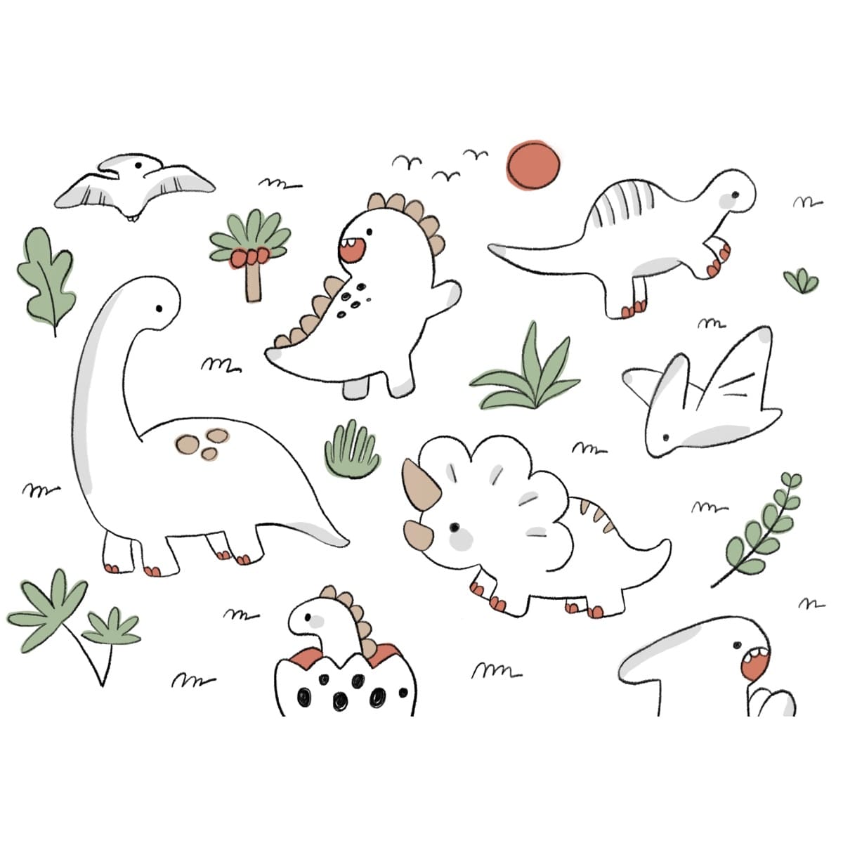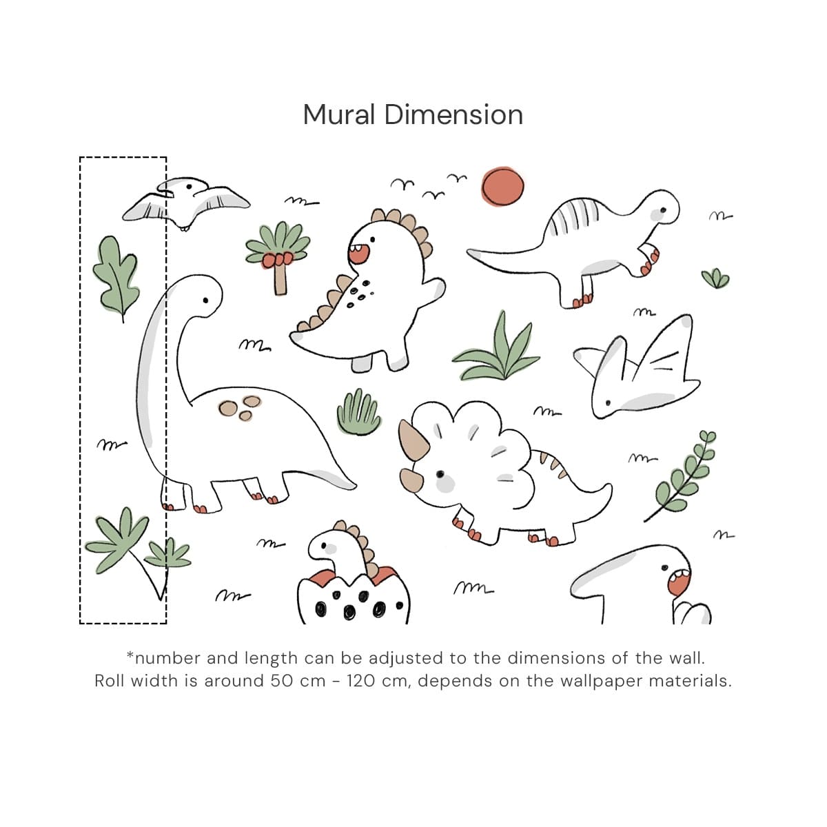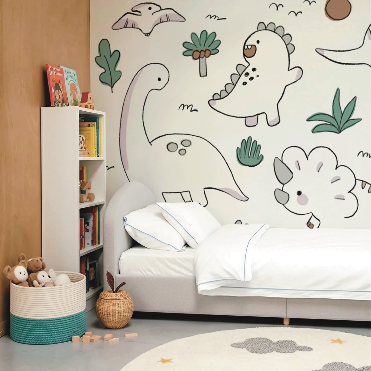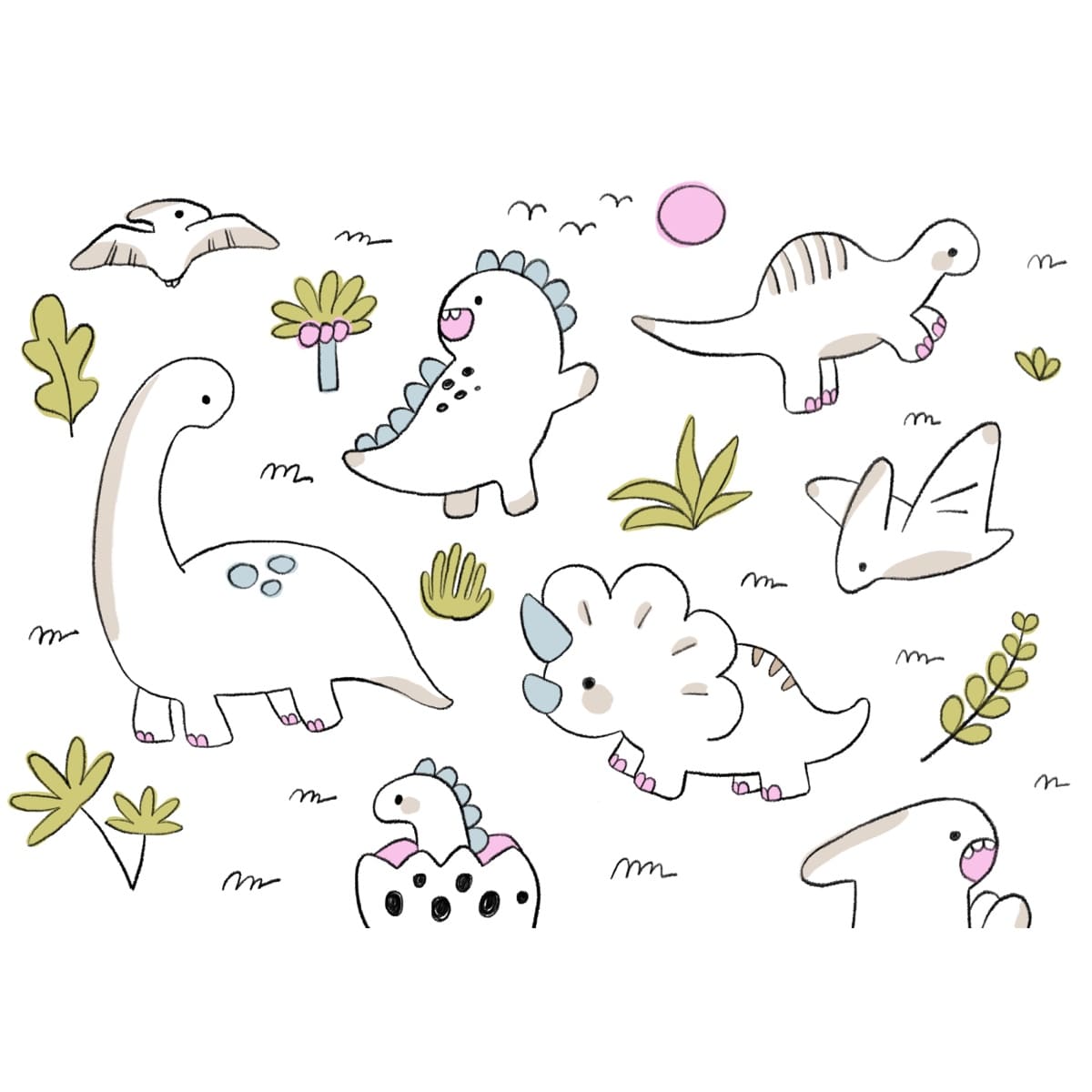 Dino Sketch Land is a gentle mural featuring pastel, doodle-style dinosaurs that add a sweet and calming touch to any child’s room. The soft color palette creates a warm, soothing environment while keeping the design fun and engaging. Each sketched dinosaur feels friendly and inviting, making it perfect for nurseries or quiet play spaces. This mural brings a comforting charm that grows with your child’s imagination.