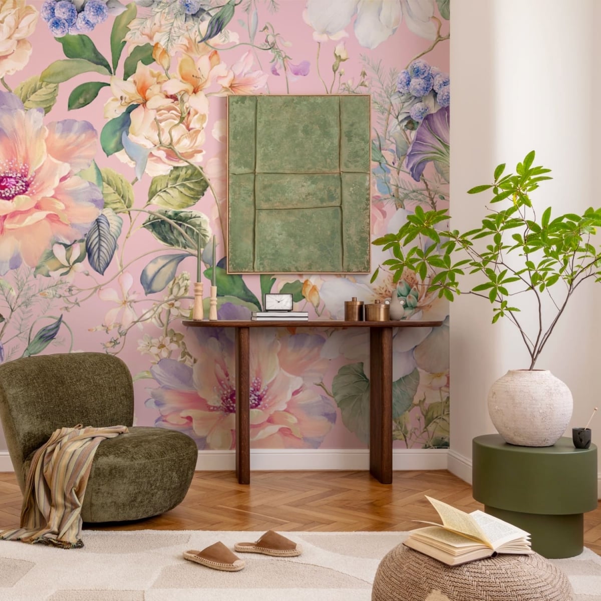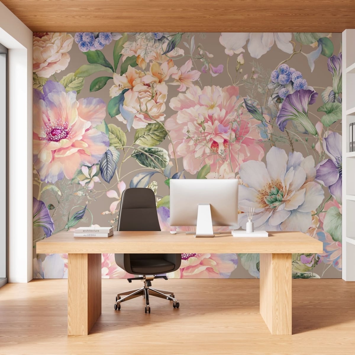 A wall-sized bouquet that feels almost celestial. The oversized blooms unfold in weightless harmony, blending softness and grandeur in one seamless vision. Light dances between petals, creating a serene glow that elevates any interior. This mural is more than décor — it is a moment of beauty, frozen in time