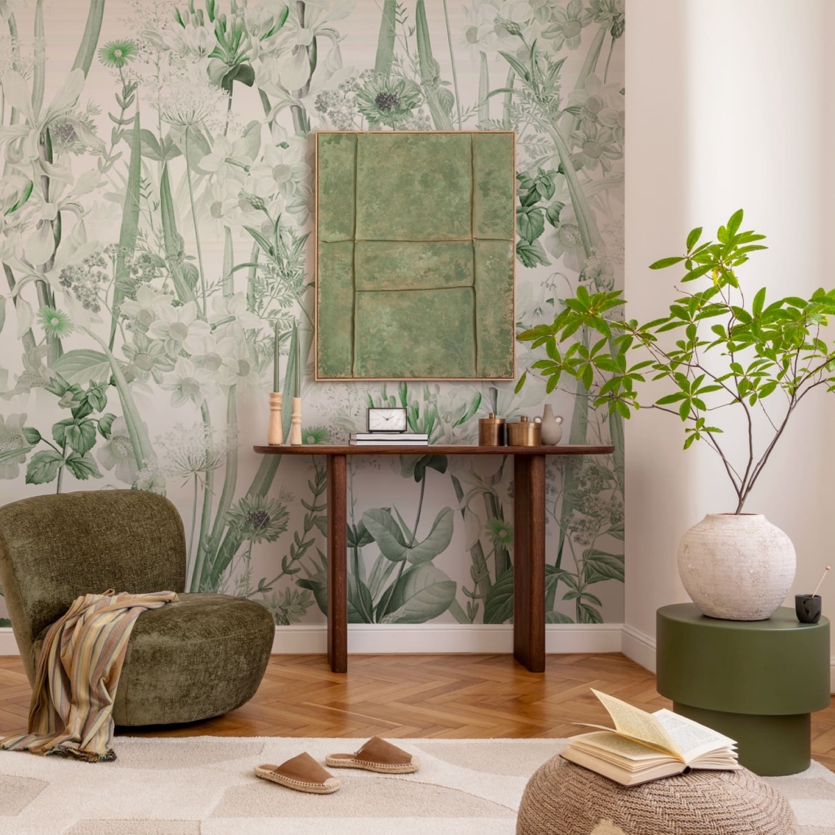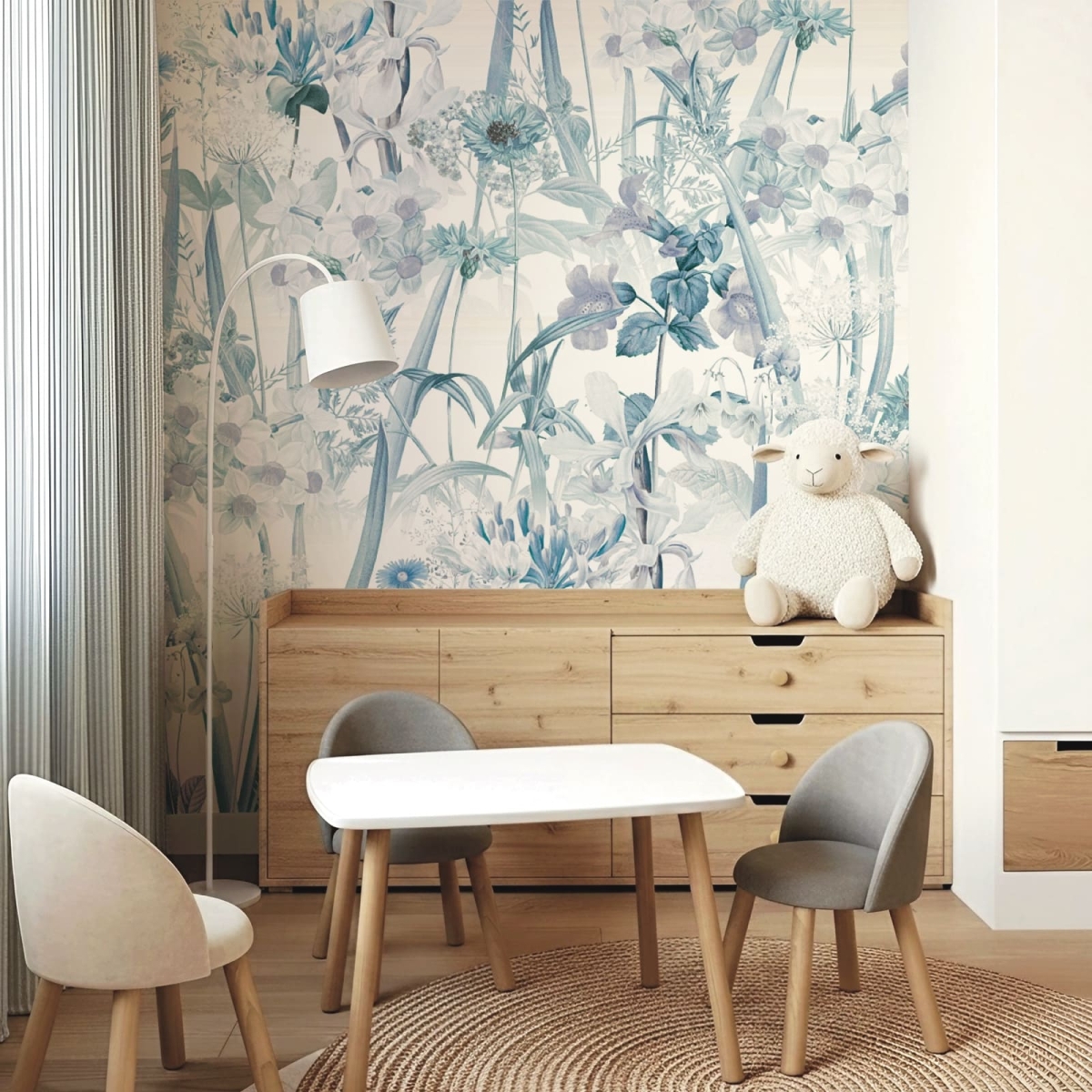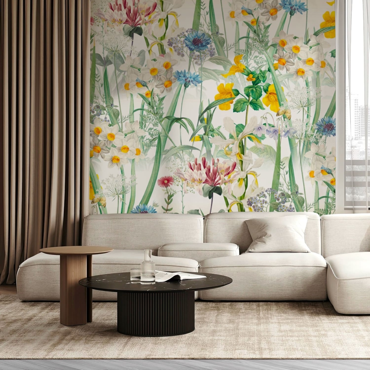 Gentle Bloom Field is a serene watercolor mural featuring a collection of realistic flowers painted in soft, calming tones. Each bloom is rendered with delicate finishes, creating an elegant atmosphere that brings natural beauty into any space. The harmonious color palette adds warmth and tranquility, making it perfect for bedrooms, living rooms, or cozy corners. This mural transforms your walls into a gentle garden that soothes the eyes and elevates the entire room’s ambiance.