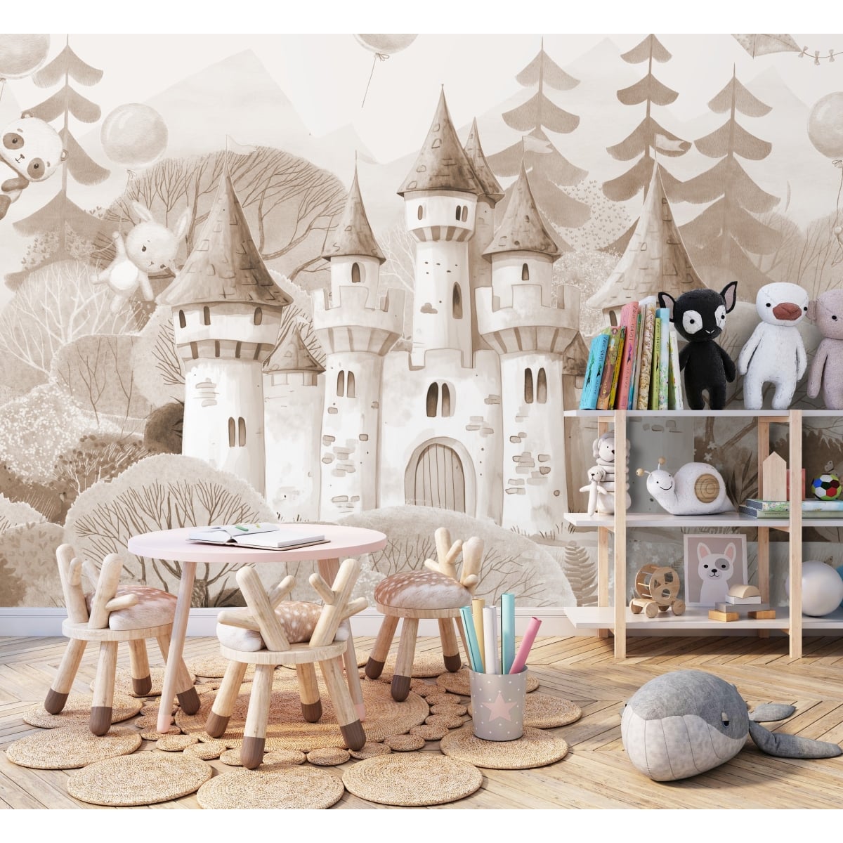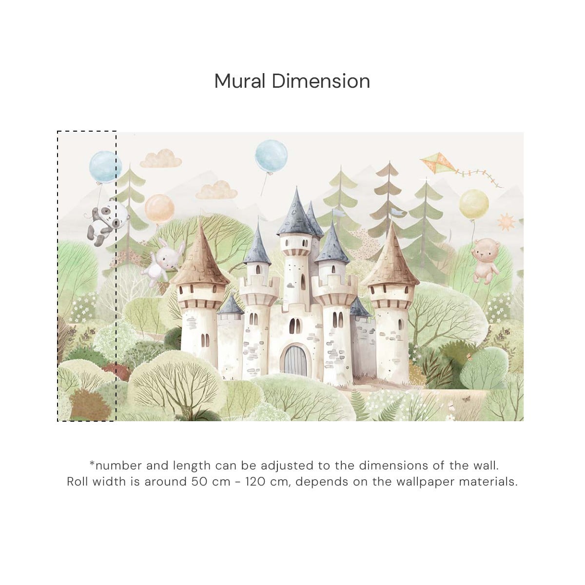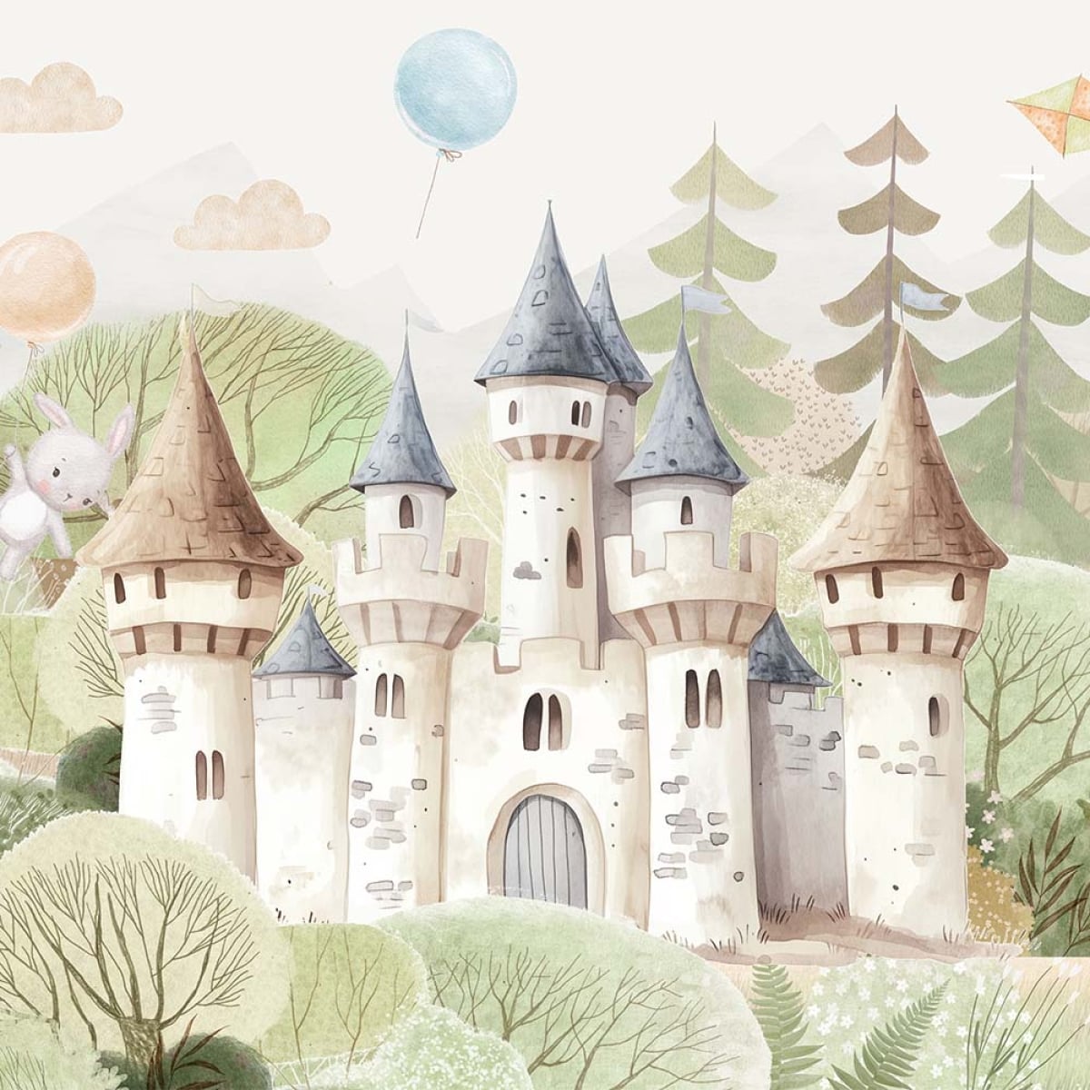 Step into a gentle storybook world where imagination and calm meet in perfect harmony. This enchanting wallpaper features a whimsical fairytale castle nestled among soft rolling hills and lush woodland scenery. Designed to create a comforting yet magical space, this wallpaper is ideal for nurseries, children’s bedrooms, playrooms, reading corners, and storytelling areas.