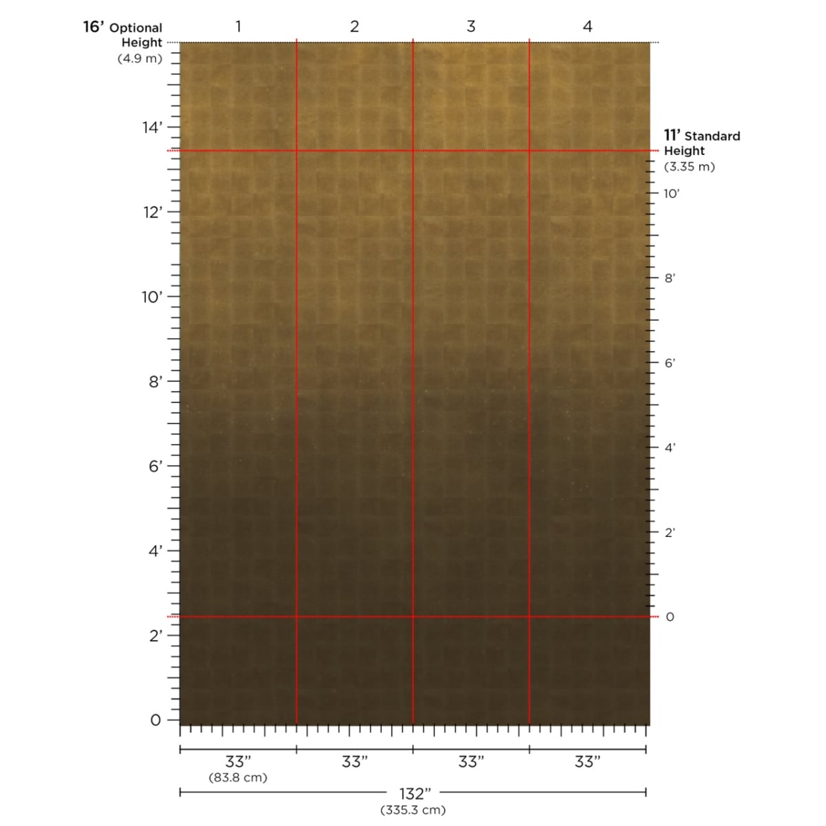 Horizontal : 132 in (335.3 cm) | Vertical : 132 in (335.3 cm)