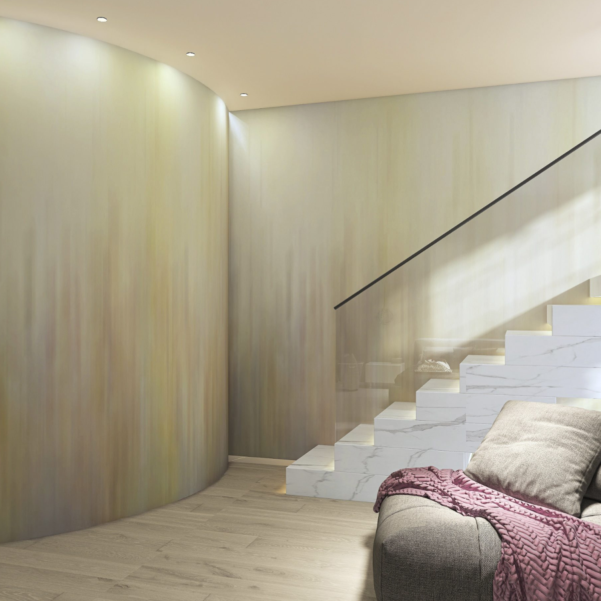 “Abstract Sunset” features a vertical gradient composition inspired by the light and depth of sunset. The design, both dynamic and measured, evokes atmosphere, rhythm, and visual continuity across the entire surface.