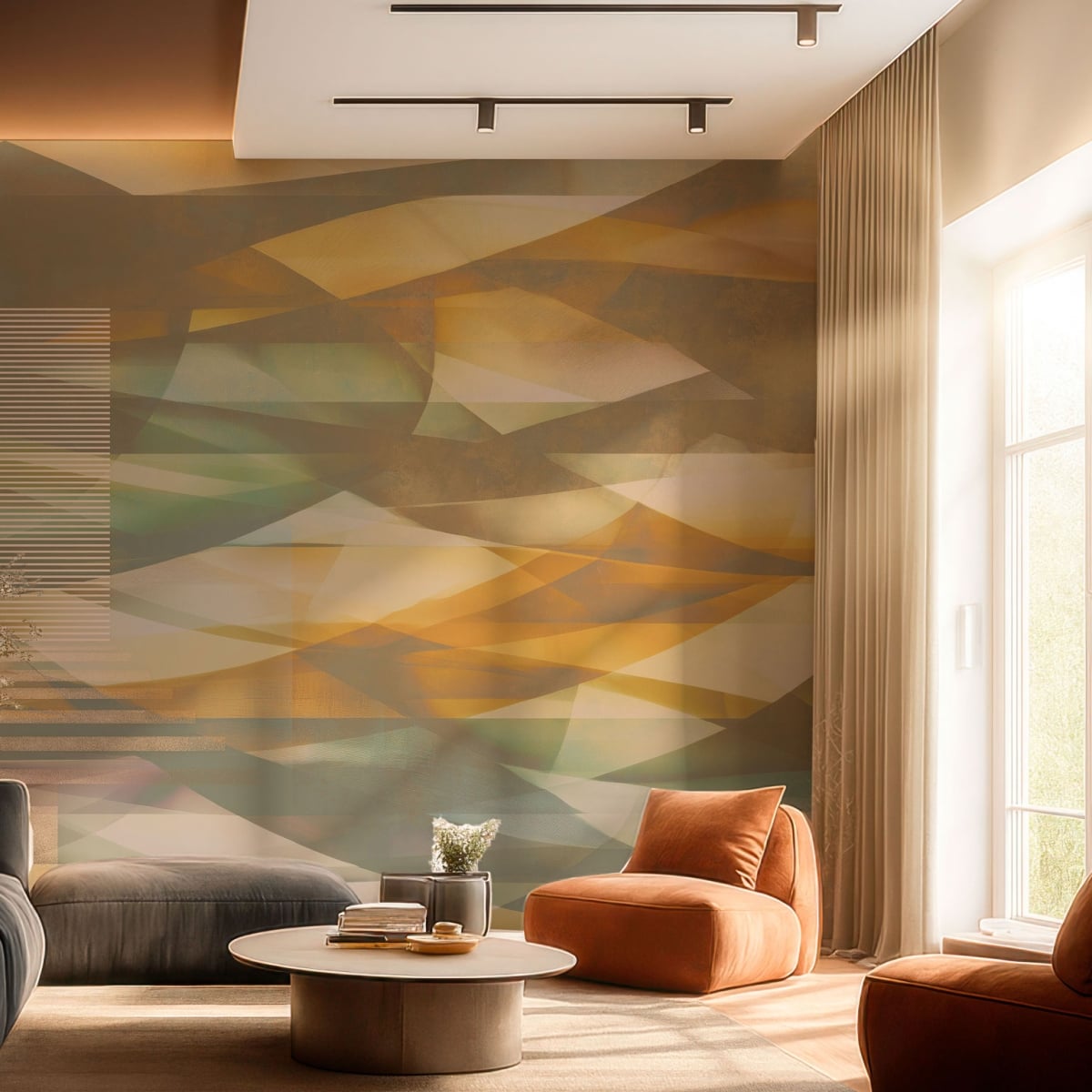 The brush stroke texture with abstract triangle lines in this soft toned creation will evoke a modern and contemporary feel in your home.