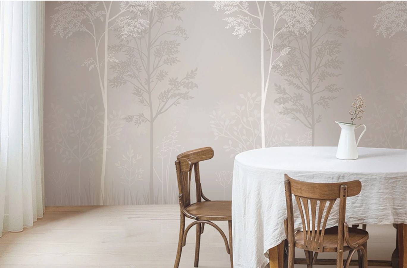 Bring the tranquility of nature into your home with wallpapers featuring lush forests, delicate trees, and botanical patterns. Using these wallpaper designs, you can