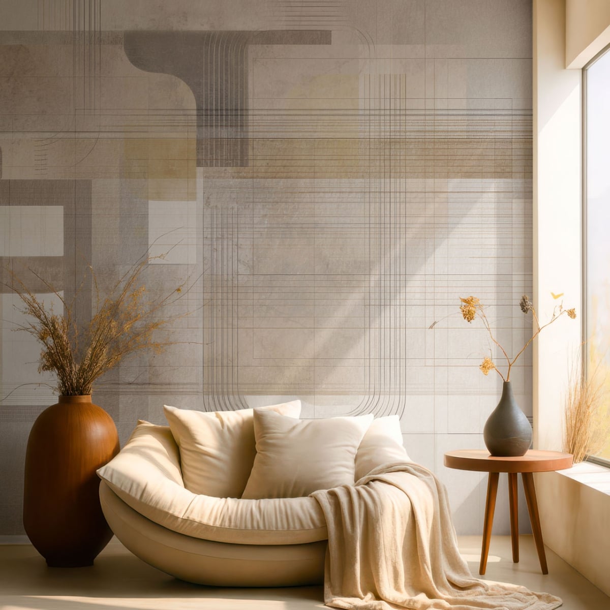 Explore this unique wallpaper design with its layered geometric square outlines in teal and white, creating a subtle sense of depth on a soft gray base. Add a touch of modern visual interest to any room.