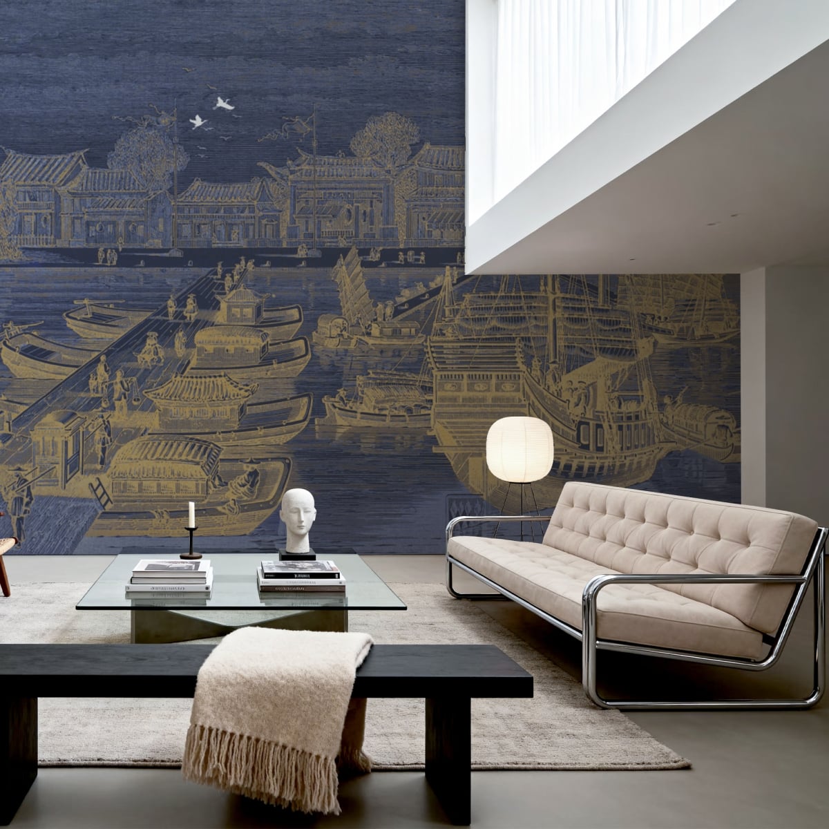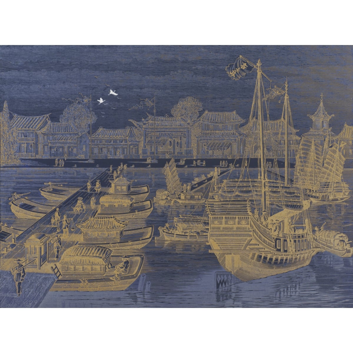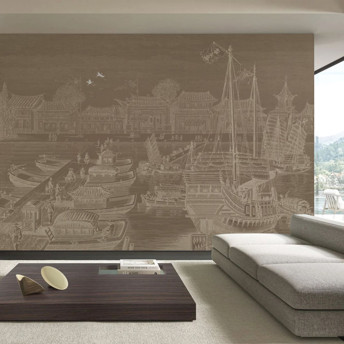 Relive the golden age of maritime trade with this magnificent mural. Designed to look like a hand-etched illustration from a historical journal, "The Harbor Etching" captures a bustling Asian port with incredible detail, translates the classic look of a copperplate engraving onto a modern wallcovering, offering unparalleled texture and depth.