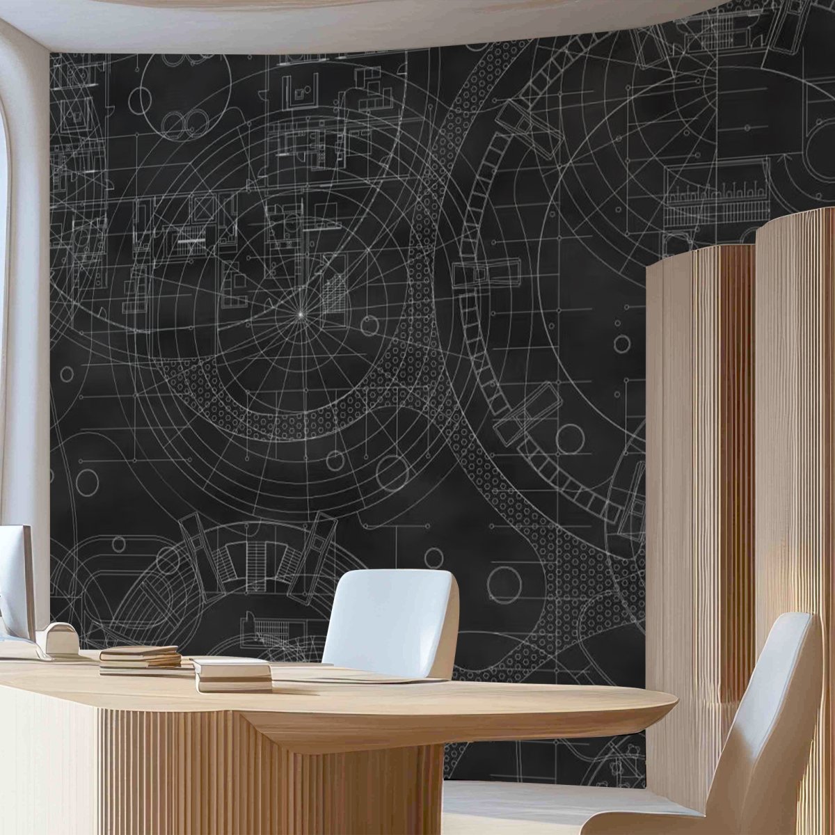 Make a bold, unconventional statement with a mural that celebrates precision and design. "The Schematic Grid" wallpaper brings an underground, industrial vibe to any room.
