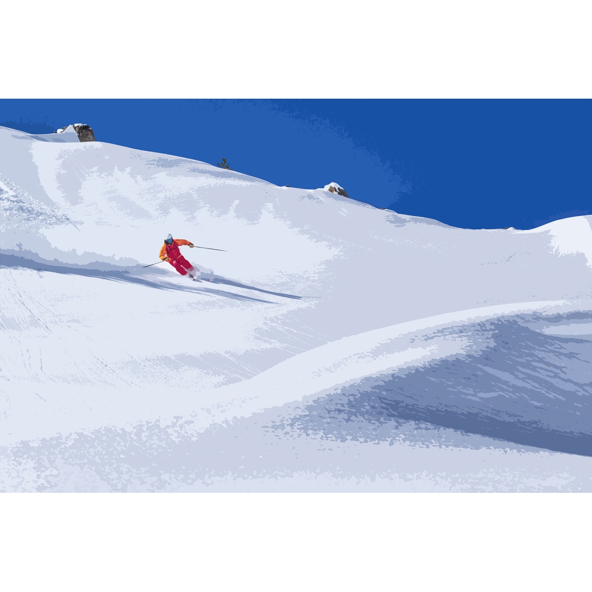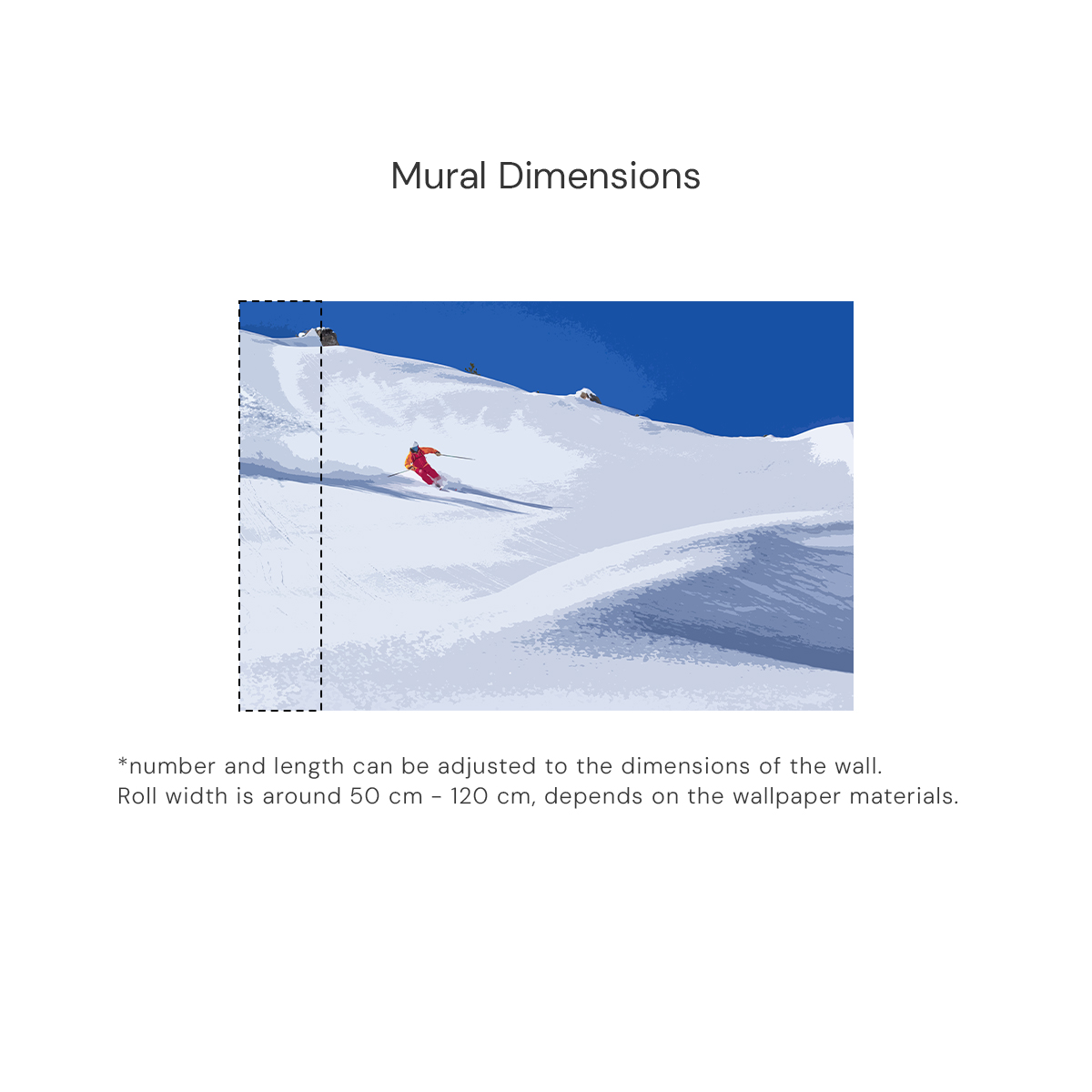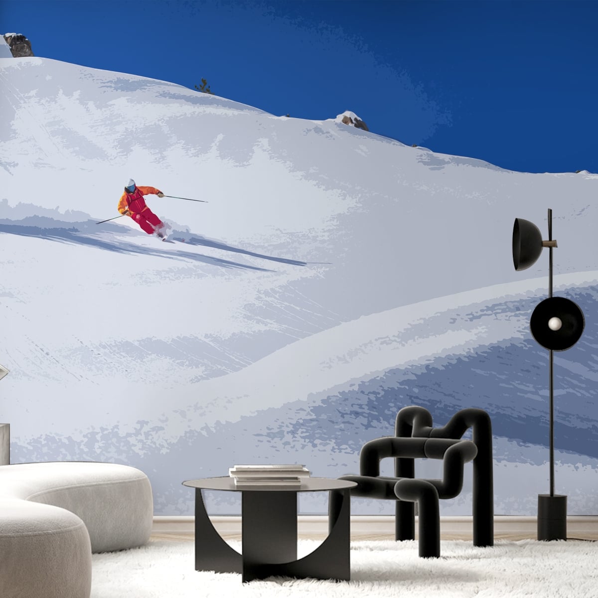 A breath of fresh mountain air. Elevate your interior with a mural that combines minimalist snowscapes with a bold pop of color. The perfect statement piece for a modern office or a cozy lounge.