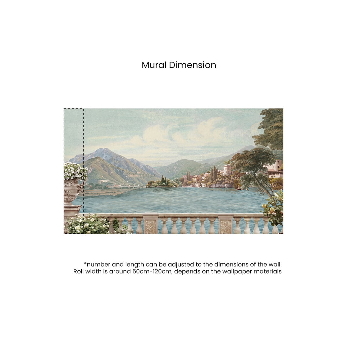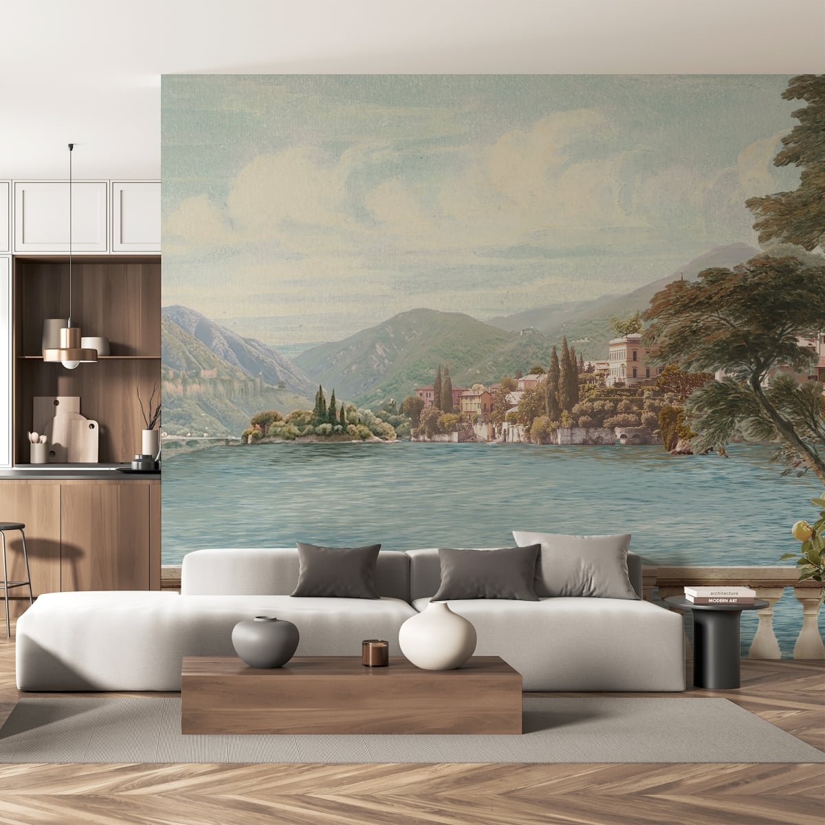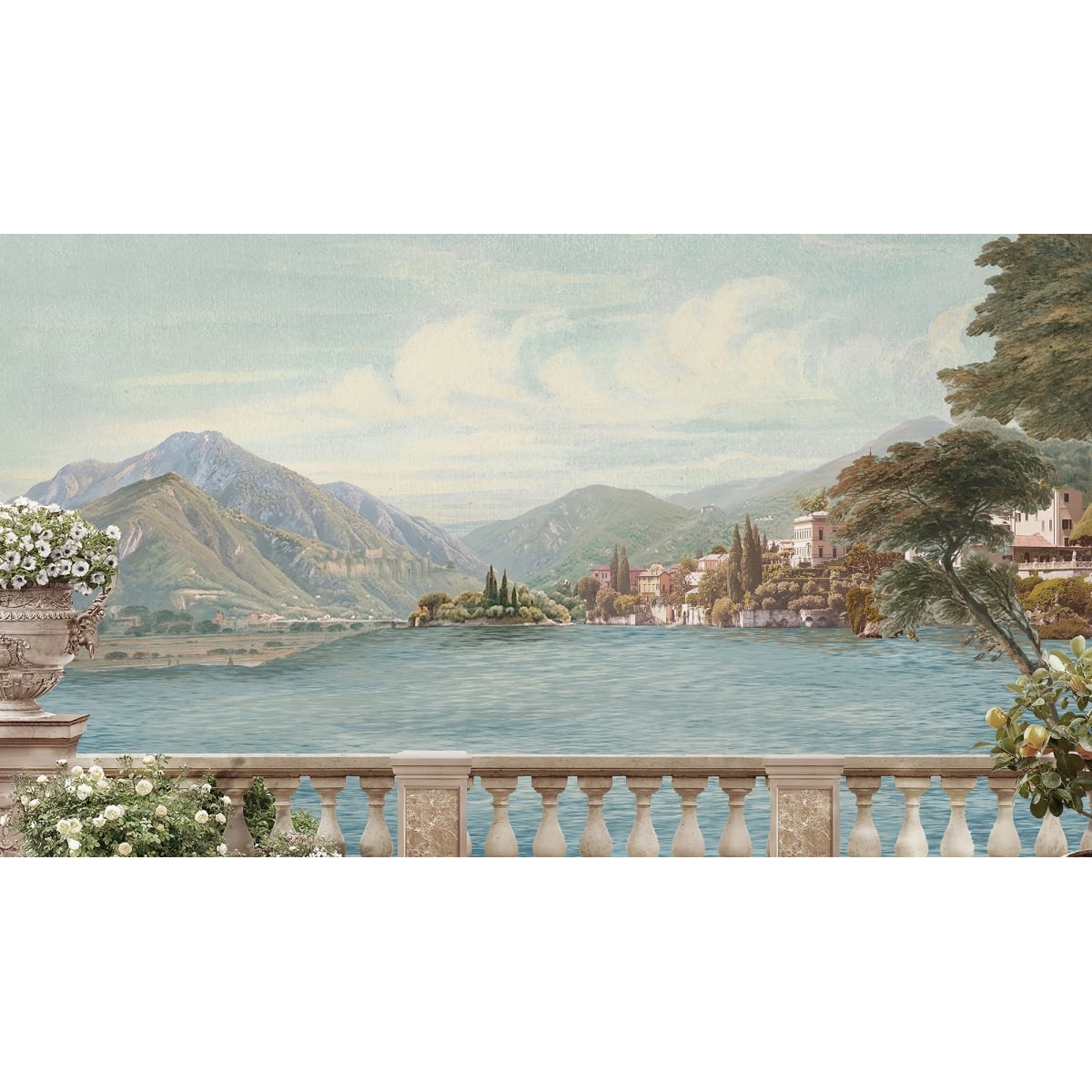 Create the illusion of endless space with the Lombardy wall covering. The clever use of perspective from the foreground garden urns to the distant alpine peaks adds architectural depth to your walls. This mural acts as a "scenic window," inviting the calm of a late afternoon in Northern Italy into your interior, making it perfect for spaces that need a sense of openness and grandeur.