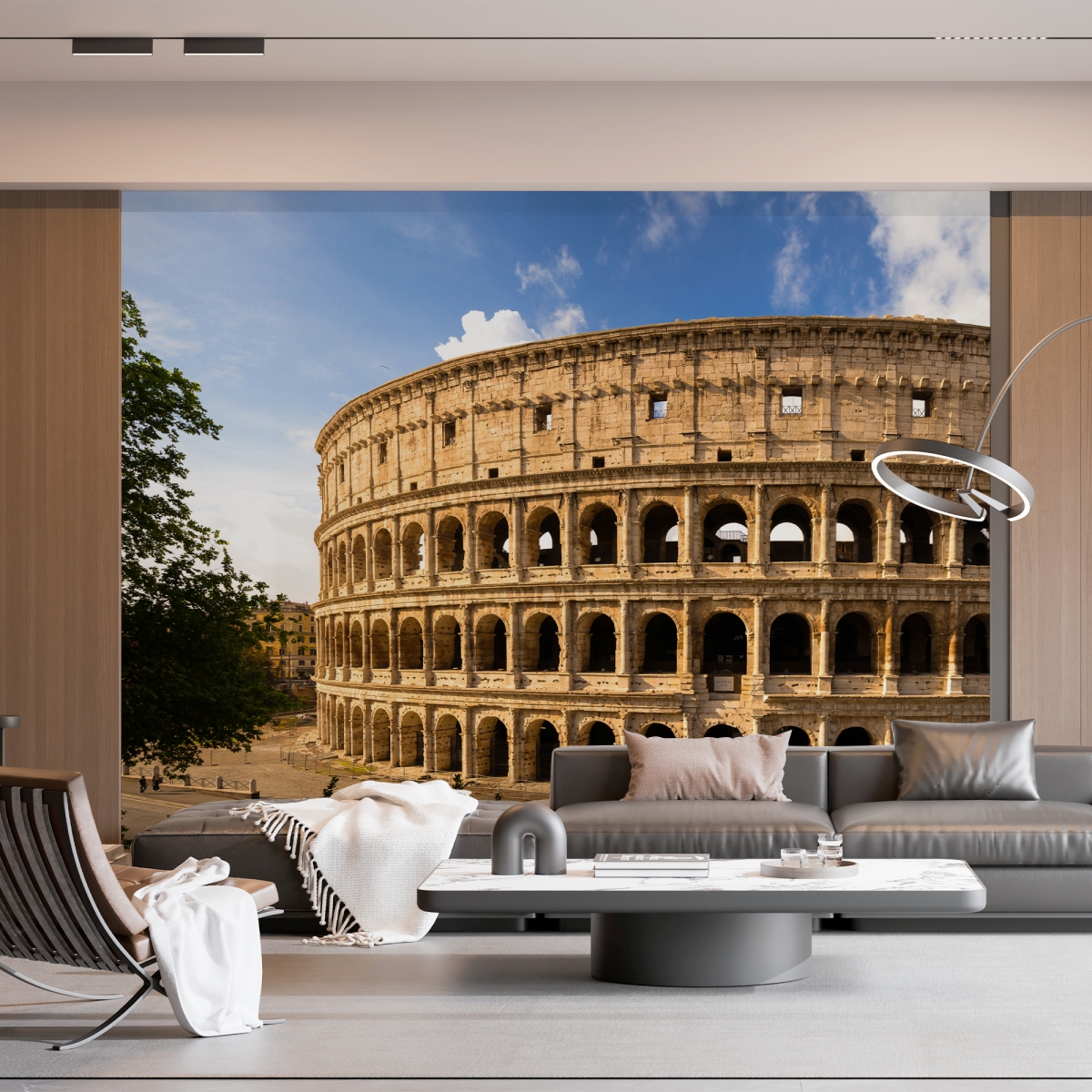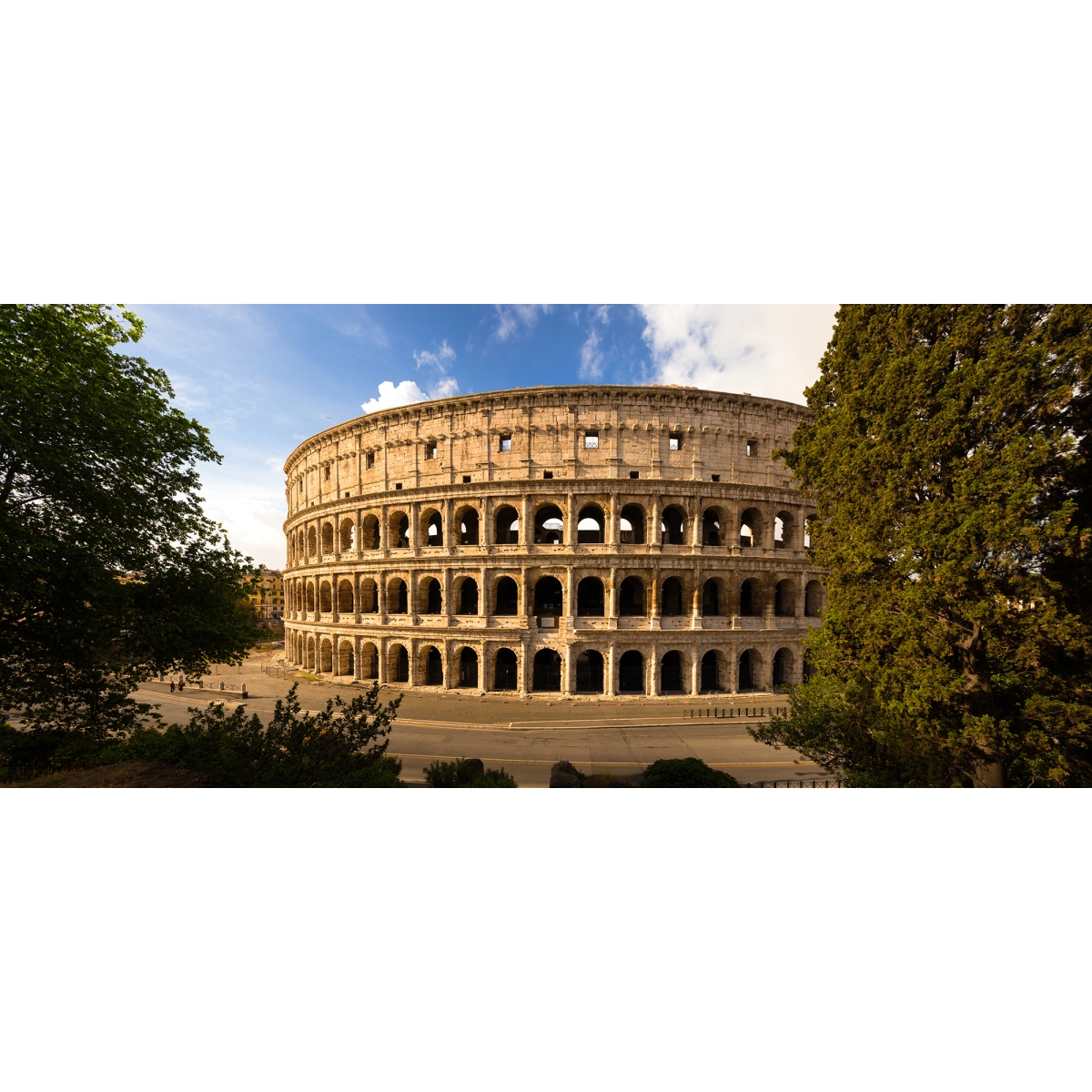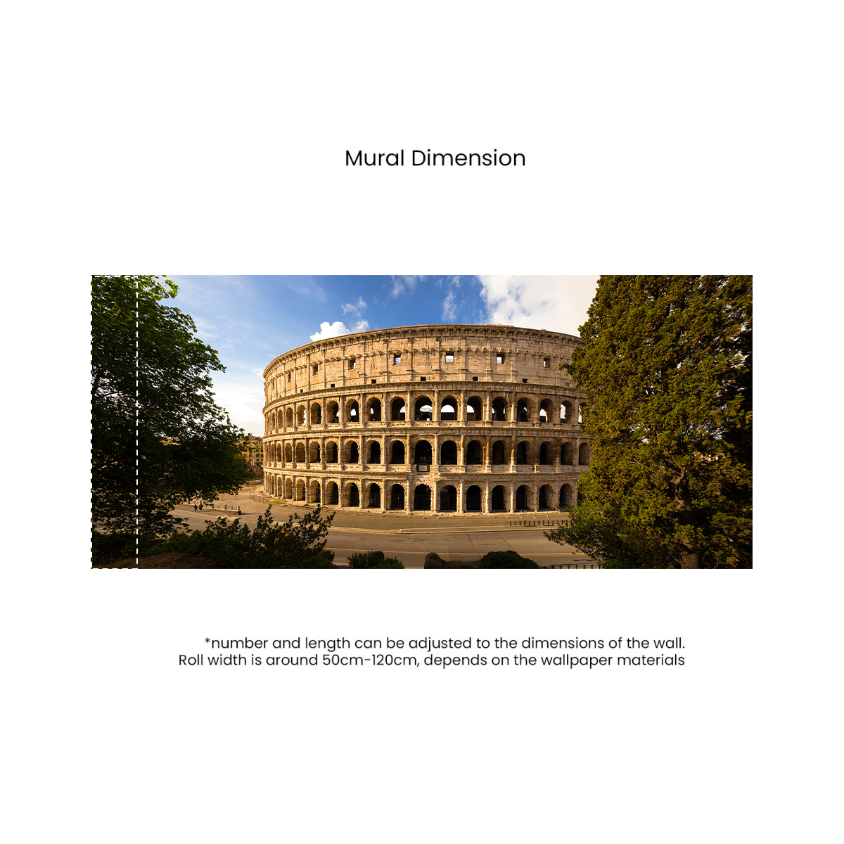 Bring the eternal beauty of Rome into your home with this breathtaking panoramic mural of the Colosseum. Bathed in golden sunlight and framed by lush greenery, this design captures the staggering scale of one of the world’s most iconic landmarks. Perfect for creating a sophisticated, historic atmosphere in a study, library, or grand living room.