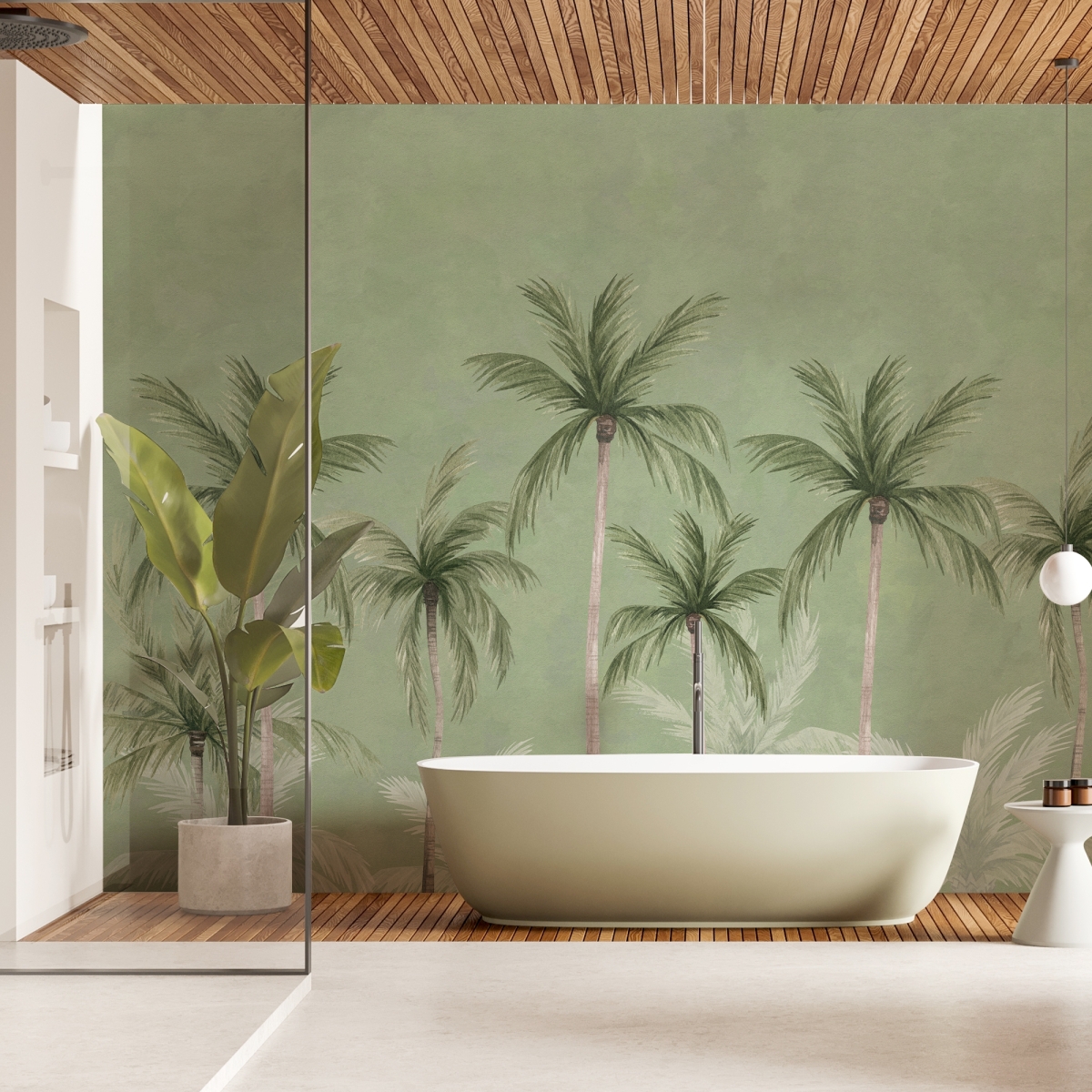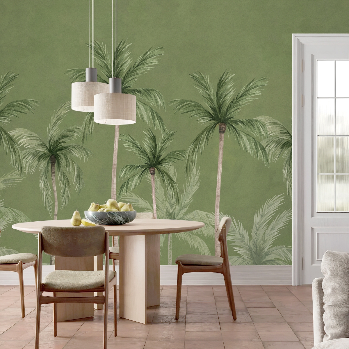 Bring a serene, botanical escape into your home with the "Palm Grove" mural. This design leans into the "Biophilic" trend, focusing on connecting indoor spaces with the calming influence of the natural world.